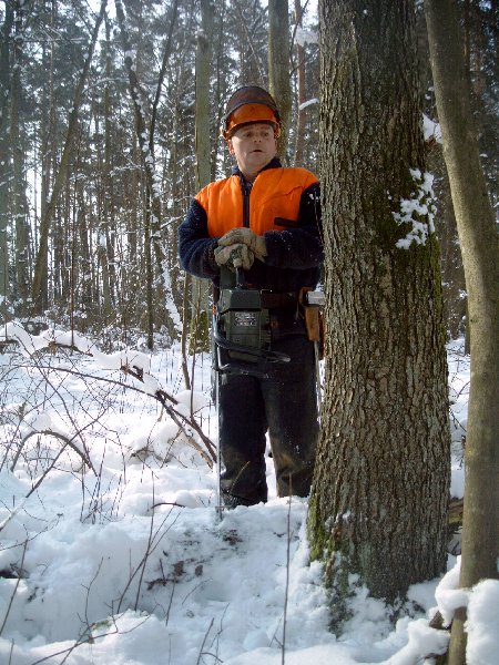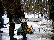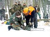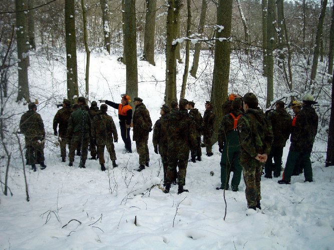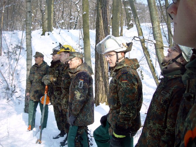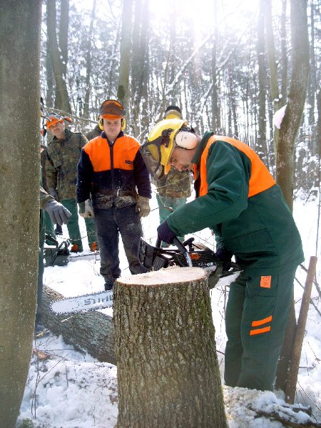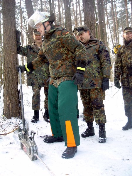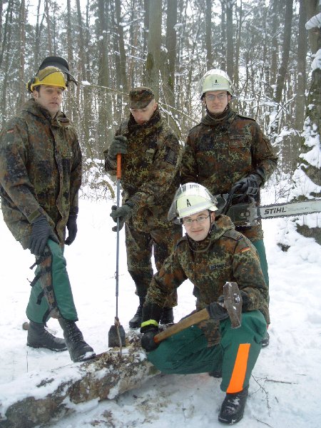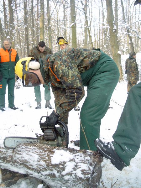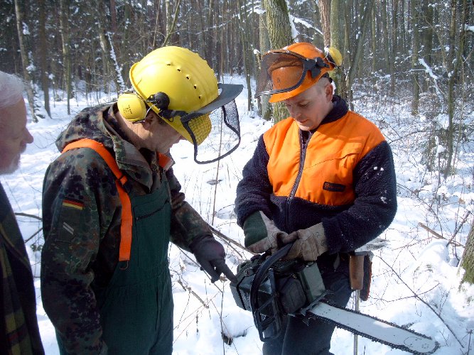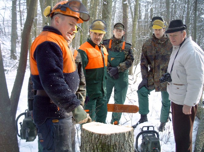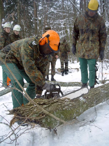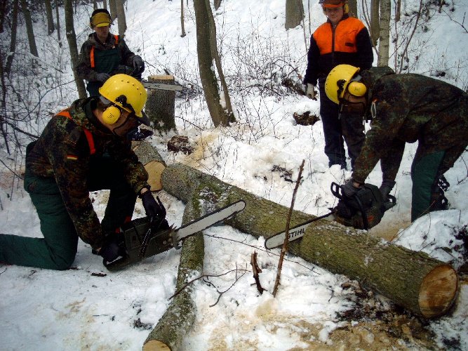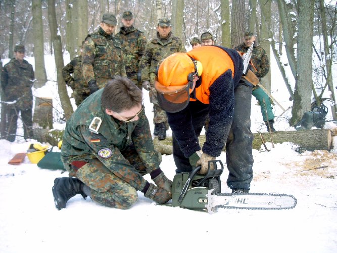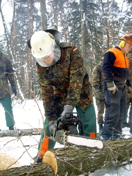 gehe ich mit dieser Motorkettensäge um? Eine Einweisung in den Umgang konnten sich die Reservisten in einem Privatwald in Wendelstein holen.