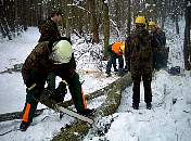 Bei Katastrophen gilt es Hindernisse aus dem Weg zu räumen. Eine Motorkettensäge kann hier gute Dienste leisten. Wie aber