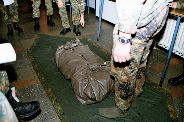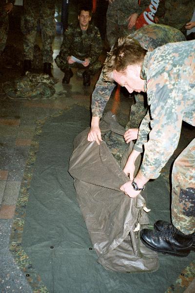 Mit dem Zeltbahnpaket! Bevor dies in den Sommermonaten praktisch geübt werden kann, musste ein Trockentraining her. Alles auf die