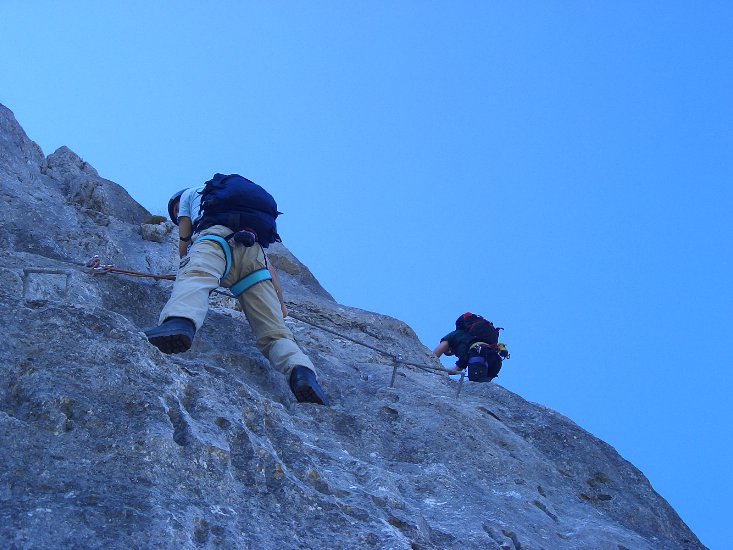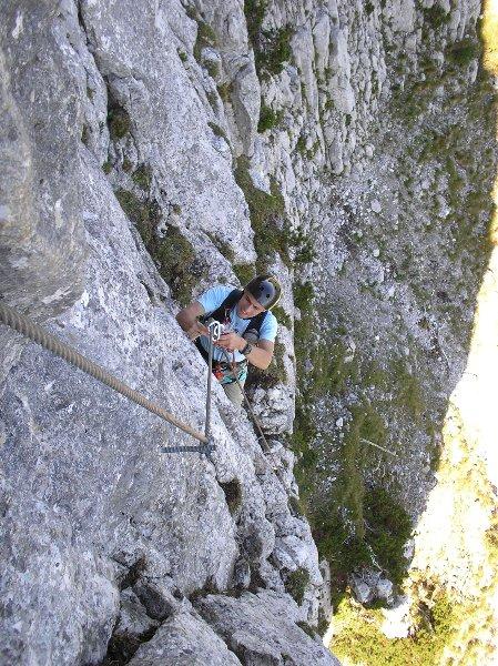 da der Route ohne die künstlichen Hilfsmittel teilweise doch in den 8./9. Schwierigkeitsgrad gehen würde.