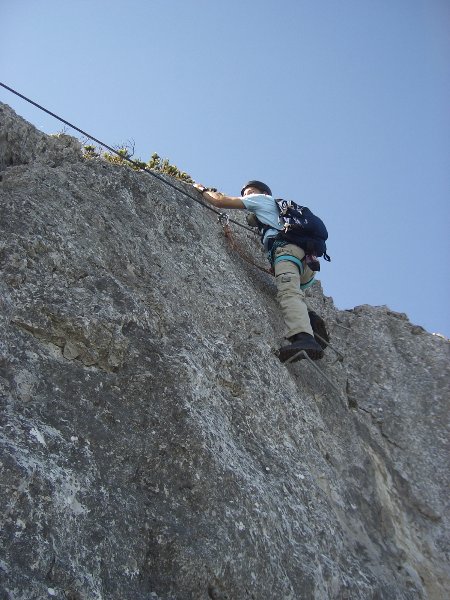 Der Steig war sehr gut abgesichert. Teilweise waren Passagen durch eine glatte senkrechte Wand mit vielen Eisenklammern als Tritte und einem