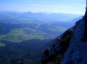 Und von hier an, sollten 1.100 m Stahlseil durch die 700 m hohen Nordabstürze des Hochstaufen leiten.
