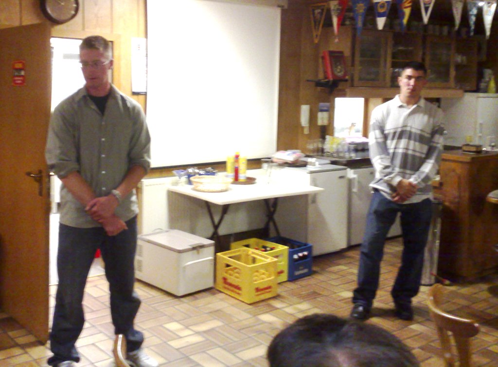 Von den in Bamberg noch verbliebenen Teile unserer Pateneinheit - das 54th Engineer Batallion und die 370th Engineer Company sind seit Ende Mai 2008 im Einsatz im Irak - gaben zwei junge Zugführer einen Einblick in ihre Erfahrungen bei der US Army. Sie berichteten über ihre Ausbildungen und blieben trotz des noch in der Nacht startenden Fluges in die USA zur Sapper School bis zum Ende der Veranstaltung.