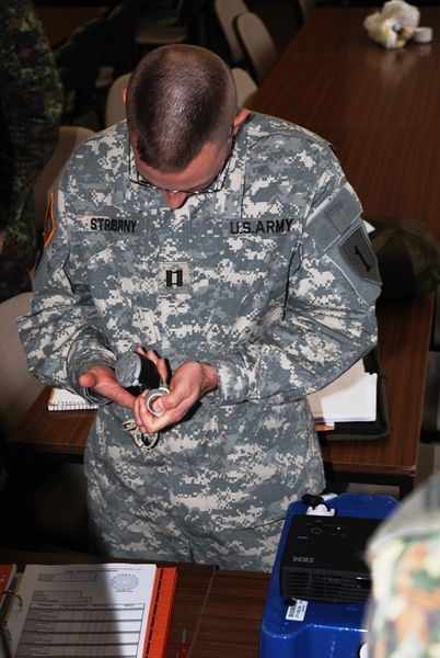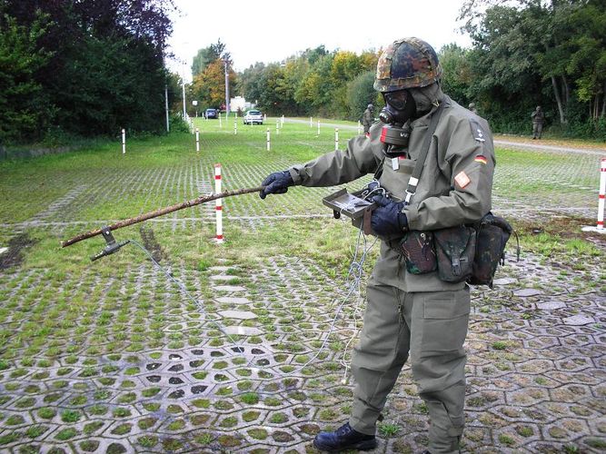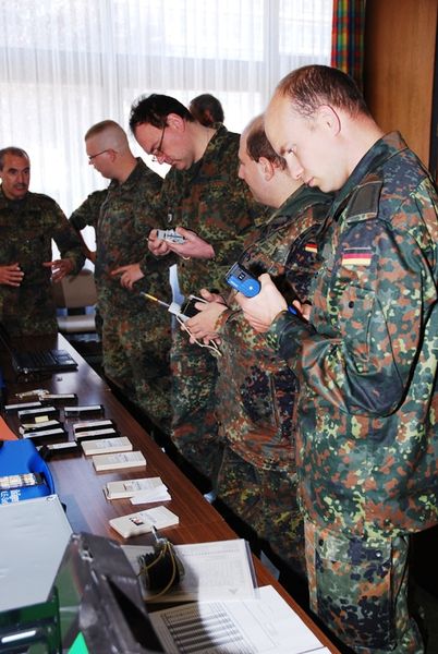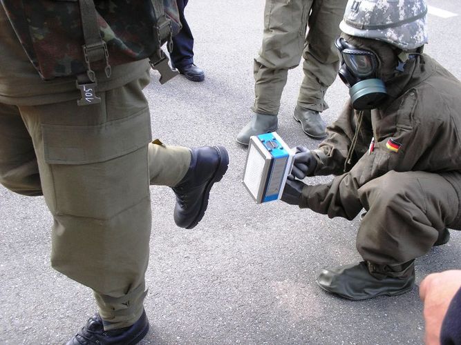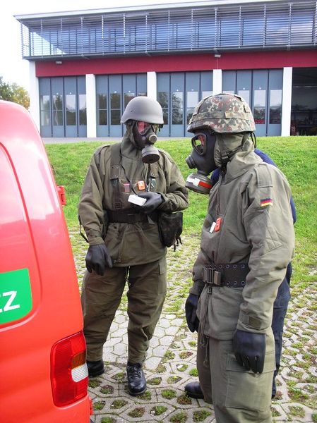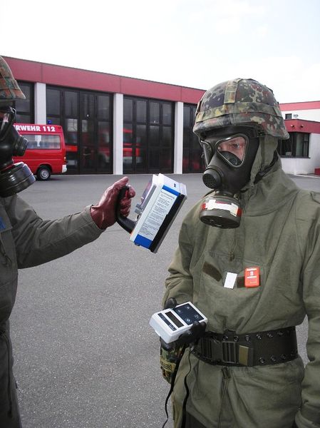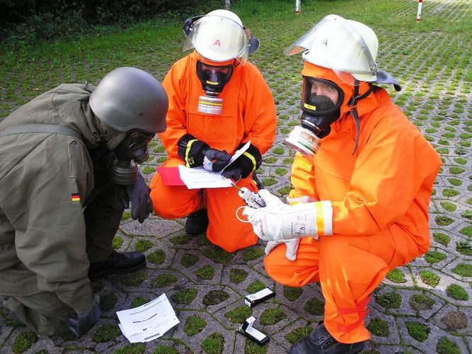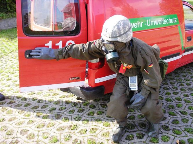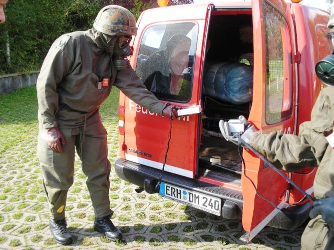 Der Einsatz als A-Spürtrupp bzw. als C-Spürtrupp, die Abfassung von Spürmeldungen und die Weiterverarbeitung in der Lagezentrale wurden praktisch geübt. Hier stellte sich dann doch heraus, dass die Bedienung der Geräte - im Trockentraining immer sehr einfach - unter ABC-Schutz mit Overgarment und Handschuhen doch wesentlich schwieriger ist.
