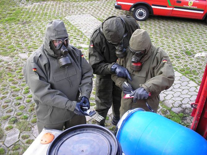 Wie kann ich feststellen, ob bei einem Unfall oder bei einem Unglück Strahlen freigesetzt werden? Sind vielleicht sogar schädliche chemische Substanzen freigesetzt worden? Die Aufklärung bei "Atomaren/Radioaktiven Material" und bei "Chemischen Stoffen" stand im Mittelpunkt der Ausbildung zusammen mit dem ABC-Dienst des Landkreises Erlangen-Höchstadt in Herzogenaurach.