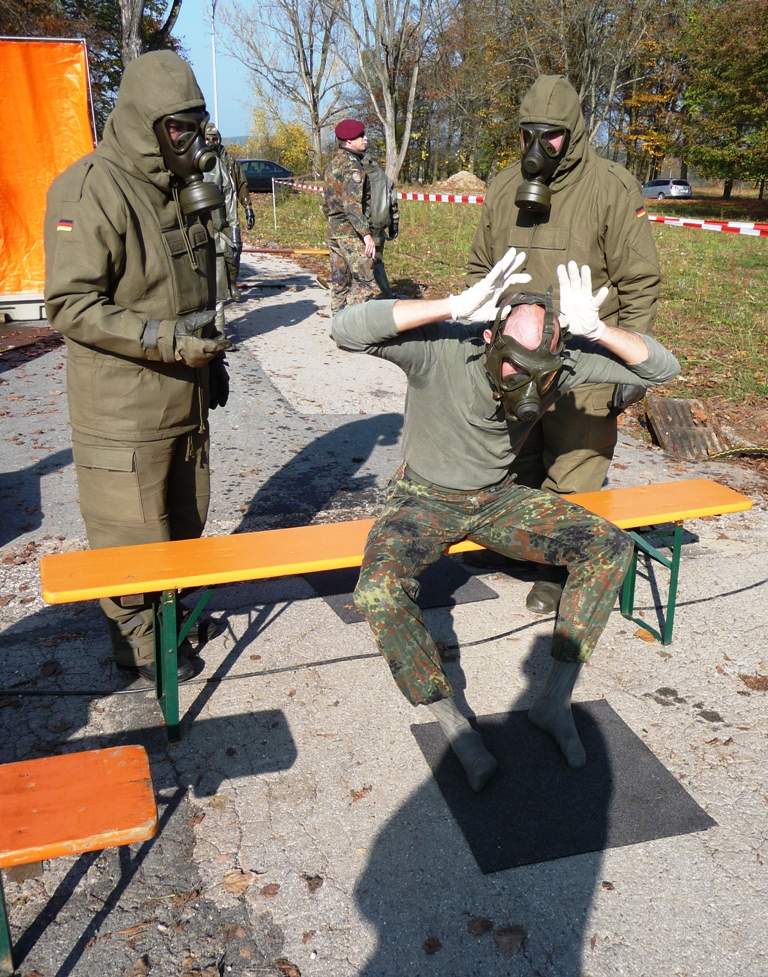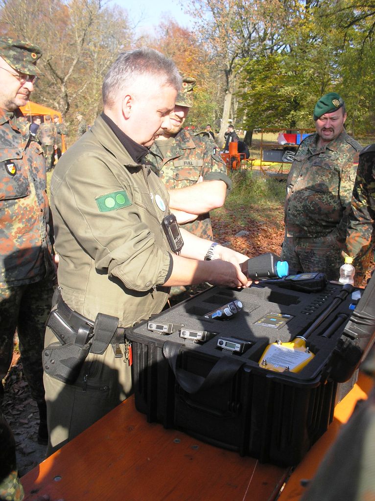 Die Arbeitsgemeinschaft ABC-Schutz der Reservisten übt deshalb regelmäßig gemeinsam mit den ABC-Diensten. Dieses Mal mit dabei neben dem ABC-Dienst Erlangen-Höchstadt auch die ABC-Dienste von Erlangen/Kosbach sowie Fürth. Unterstützt wurde die Ausbildung auch von der Bayerischen Bereitschaftspolizei, die ihre Messgeräte für den ABC-Einsatz vorstellte sowie von dem Bayerische Roten Kreuz Adelsdorf, die sich um die Verpflegung kümmerte. Der ABC-Dienst Wießenburg beobachtete die Veranstaltung, um Erfahrungen für eine gemeinsame Übung in 2009 zu sammeln.