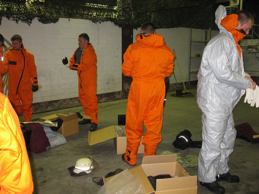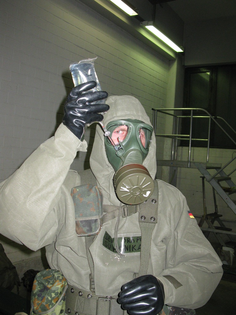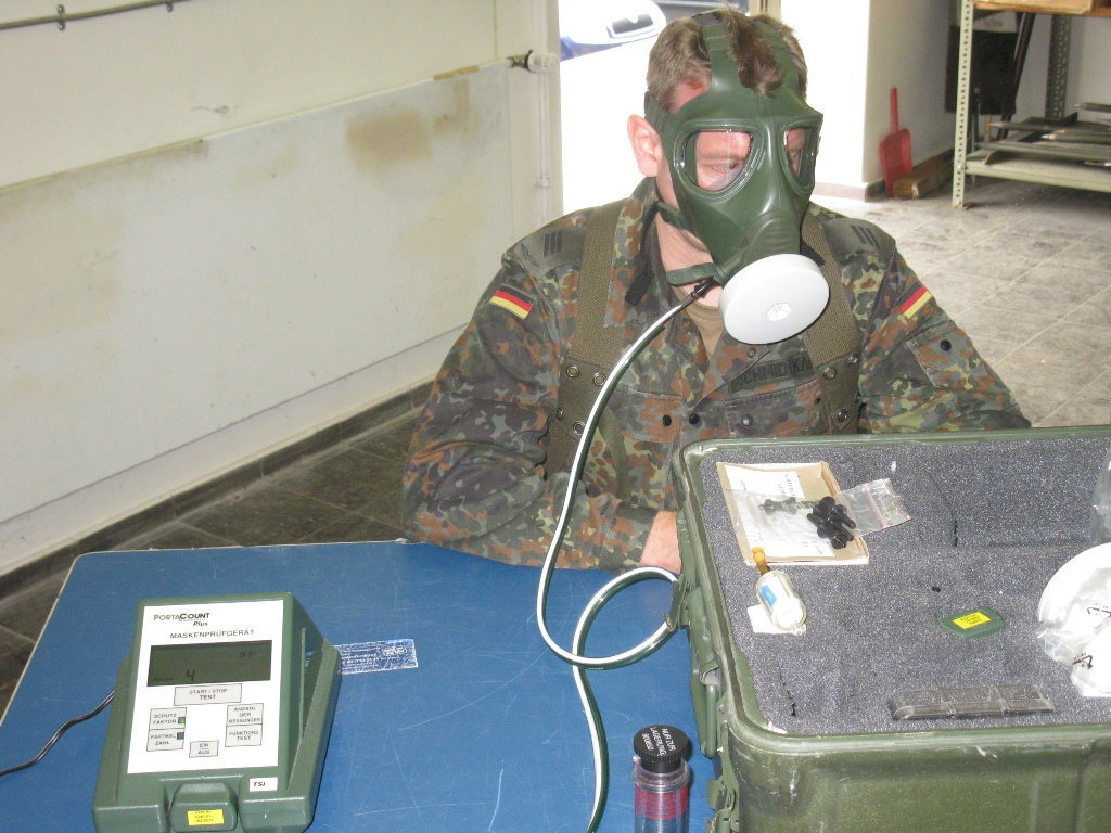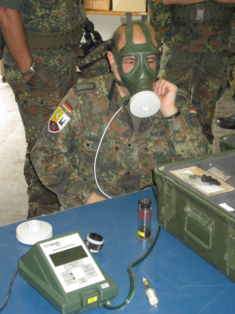 Am ersten Tag wurden noch die fehlenden Dichtigkeitsüberprüfungen der ABC-Schutzmaske durchgeführt. Anschließend ging es um die Einweisung in die Messgeräte zur Feststellung der A/C-Kontamination. Hier konnten die Messgeräte zwischen Bundeswehr und Feuerwehr/ABC-Dienst gut verglichen werden.