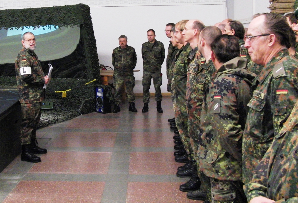 Am 29.10.2009 trafen sich 36 Reservisten des Bezirks Mittelfranken-Ost um unter Leitung der RK Nürnberg eine Ausbildung am Ausbildungs-Gerät Schießsimulator Handwaffen / Panzerabwehrhandwaffen (AGSHP) durchzuführen. Geplant war, die Schulschießübungen für das Gewehr G36 (G36-S-1a bis G36-S-3), die Panzerfaust Pzf3 (Pzf3-S-1 bis Pzf3-S-3), das Maschinengewehr MG3 (MG-S-1 bis MG-S-4) und die Pistole P8 (P-S-1 bis P-S-3) im Rahmen einer Stationsausbildung auf den beiden uns zur Verfügung stehenden Simulatoren zu absolvieren. Da jedoch einer der AGSHP-Simulatoren ausgefallen ist und auch nicht durch Fachpersonal des LwAusbReg zum Laufen gebracht werden konnte, wurde kurzfristig umdisponiert. An dem funktionierenden AGSHP konnten unter Leitung des Kameraden Kotowski die Schulschießübungen für das G36 absolviert werden, während am defekten Simulator Kamerad Gaschler den Reservisten eine Einweisung in die Funktion und Handhabung aller für das AGSHP zur Verfügung stehenden Waffen zukommen lies.