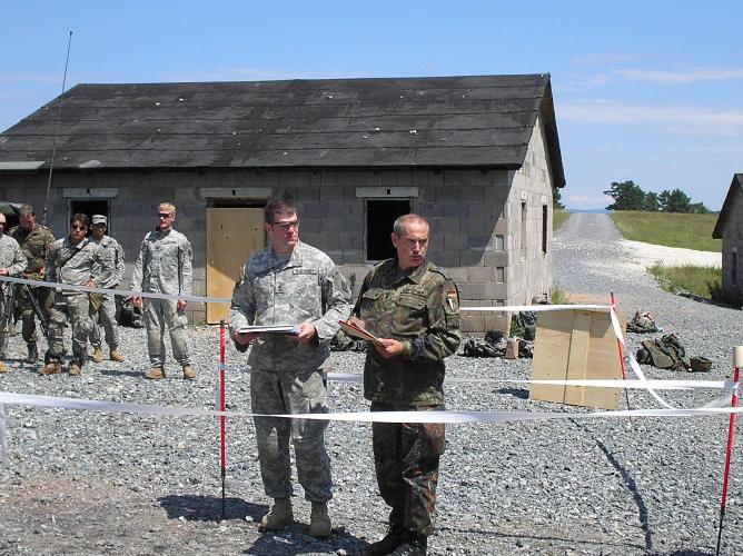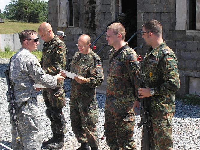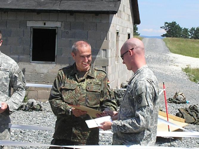 CPT Burke konnte das Leistungsabzeichen in Gold sowie das Sportabzeichen überreicht werden. Die Kameraden Torsten Schwab, Alexander Wilkens, Martin Kohlert und Ernst Schrödinger konnten vom neuen Kompaniechef der 370th Engineer Company, CPT Massie, die Schießauszeichnungen in Empfang nehmen.
