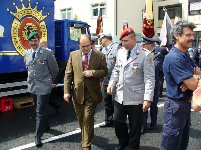 Ein Festzug durch die Innenstadt - bei Dauerregen - rundete das Programm ab. Der Parlamentarische Staatssekretär Christian Schmidt ließ sich vor Ort in die Aktivitäten einweisen.