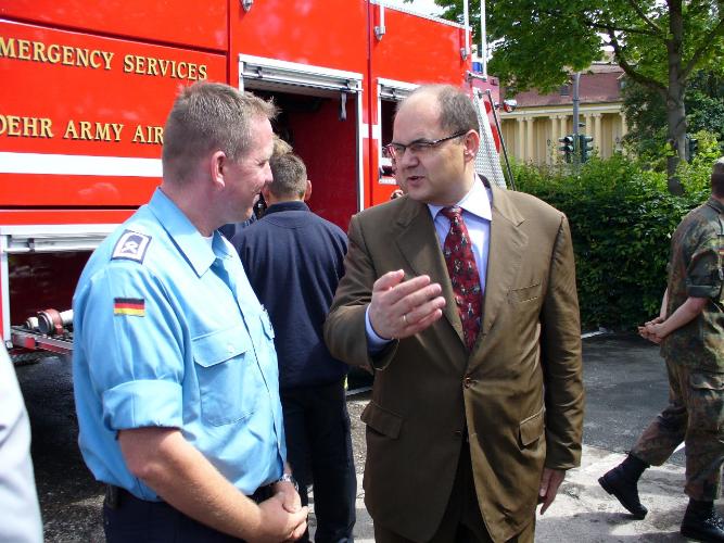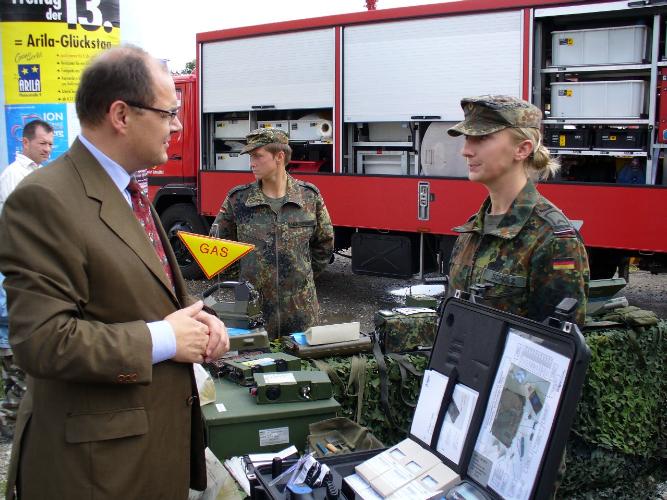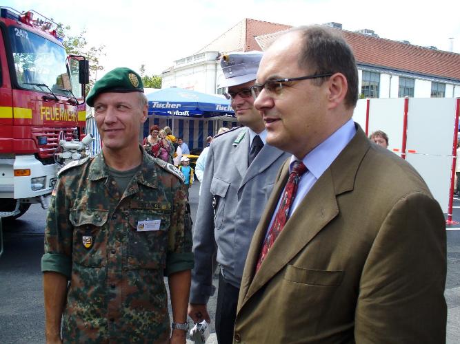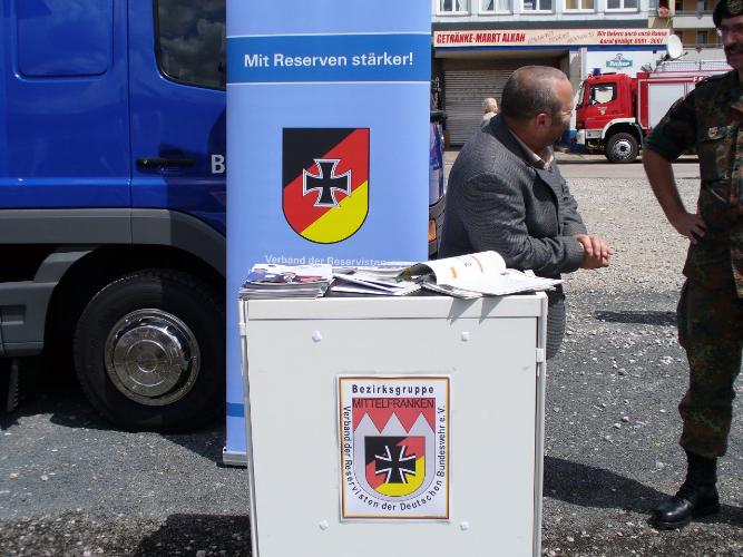 Um im Falle eines Falles besser zusammenarbeiten zu können, hat sich die Bundeswehr mit aktiven Truppenteilen und mit dem aus Reservisten besetzten Kreisverbindungskommando in Ansbach am Bezirksfeuerwehrtag beteiligt. Unser Mitglied Prof. Dr. Friedwart Lender war hier ebenfalls mit von der Partie.