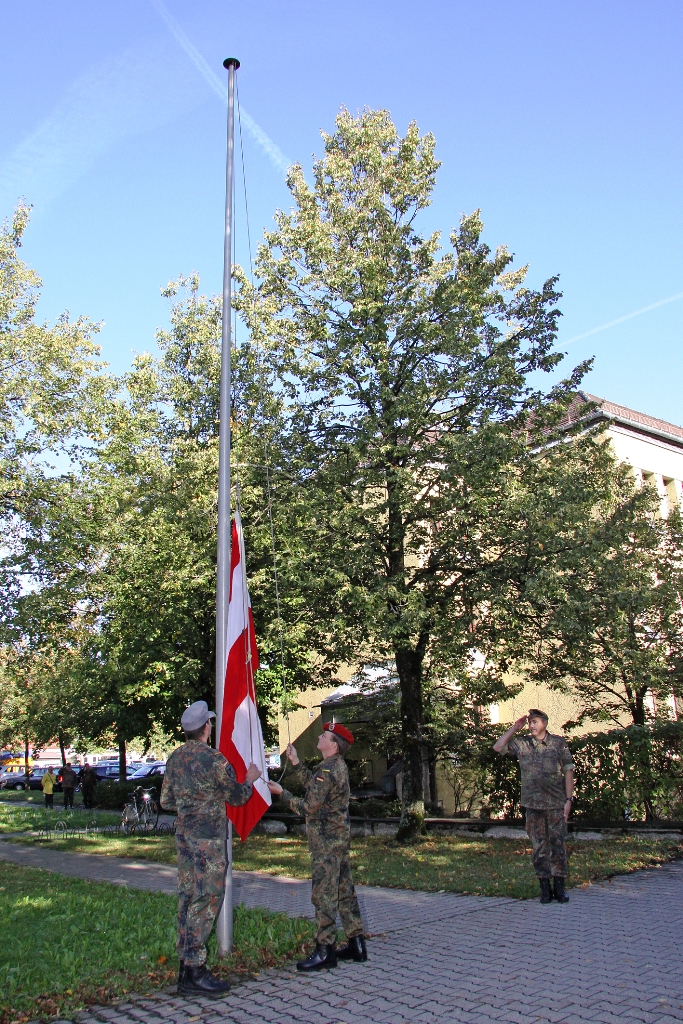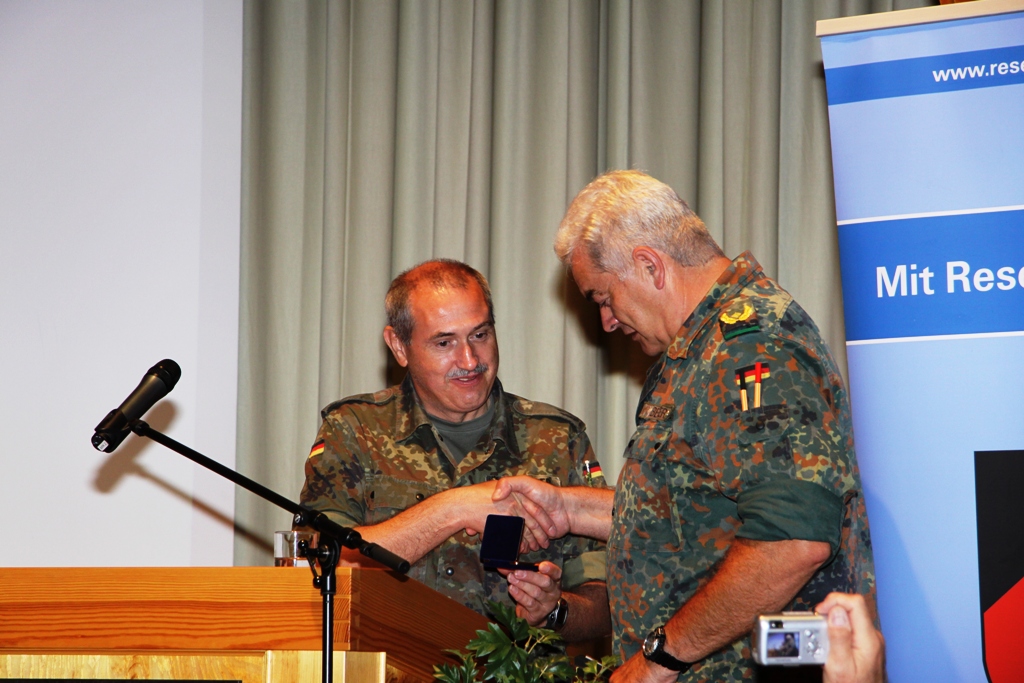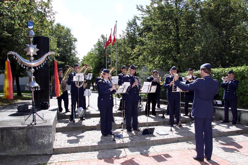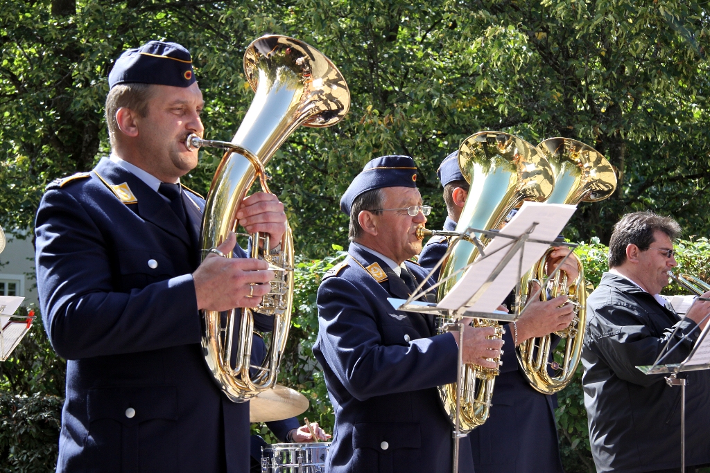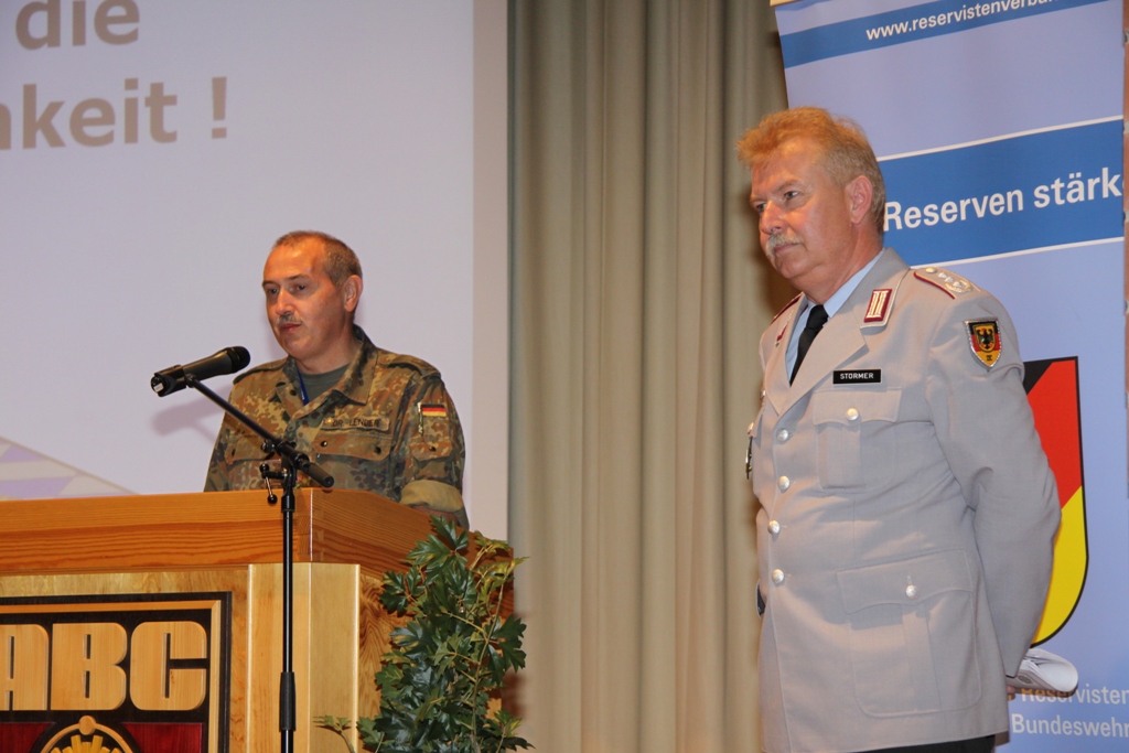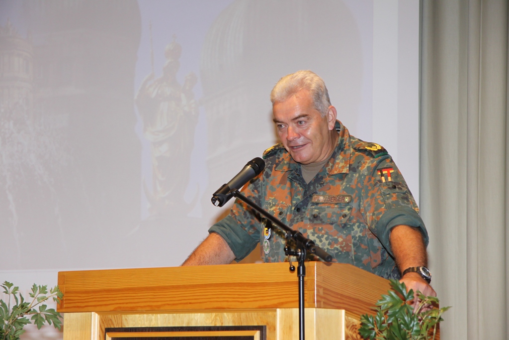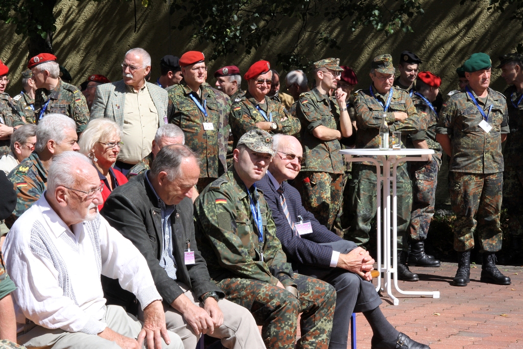 Nach der Flaggenparade mit den Hymnen Österreichs, der Schweiz und Deutschlands, gespielt durch den Reservistenmusikzug JaBoG 34 Allgäu, konnte der Landesvorsitzende des Reservistenverbandes, OTL d.R. Prof. Dr. Friedwart Lender, Vertreter aus Politik, Militär aus dem In- und Ausland sowie Vertreter der ABC- und Selbstschutzschule begrüßen. Unter ihnen den Bürgermeister der Stadt Sonthofen, Wolfgang Deppe, mehrere Stadträte, den Befehlshaber des Territorialkommandos 4 aus der Schweiz, Divisionär Hans-Ulrich Solenthaler, den Stellvertretenden Befehlshaber im Wehrbereich IV SÜDDEUTSCHLAND, Brigadegeneral Johann Berger, den Stellvertretenden Schulkommandeur, Oberst Peter Hentrich, sowie den Stellvertretenden Militärkommandanten von Voralberg/Österreich, Oberst Johannes Grissmann.