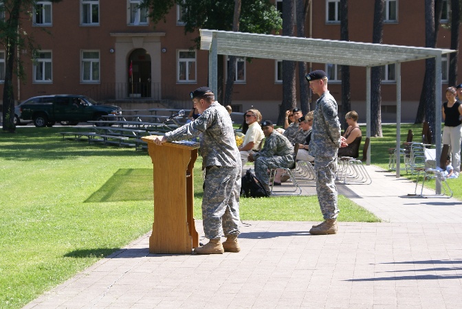 CPT Brian Sawser übergab das Kommando über die Kompanie nach 16 Monaten Dienst an seinen Nachfolger, CPT Massie. Die normale Stehzeit als Kompaniechef ist in der US Army zwischen 15 und 18 Monaten.