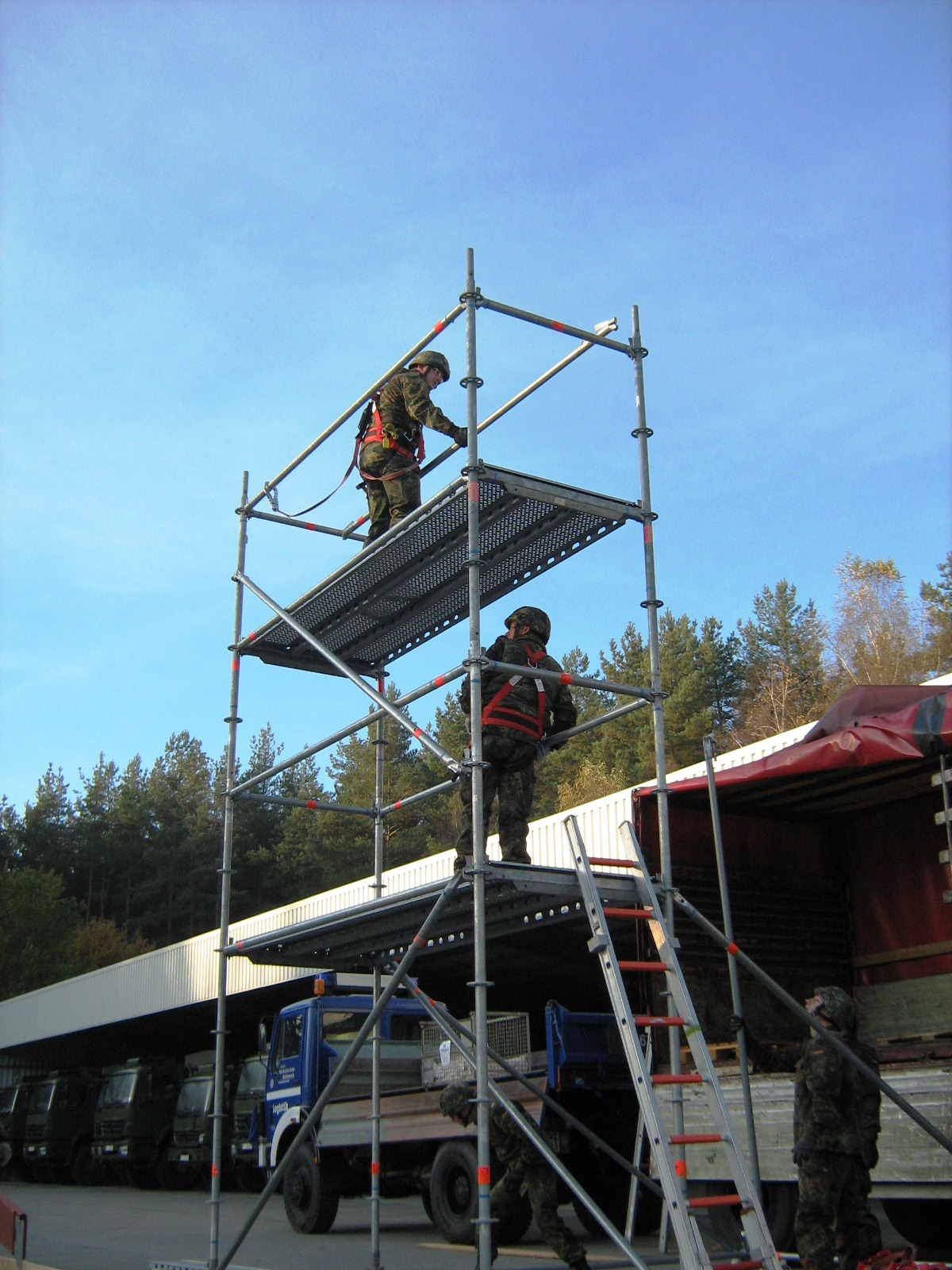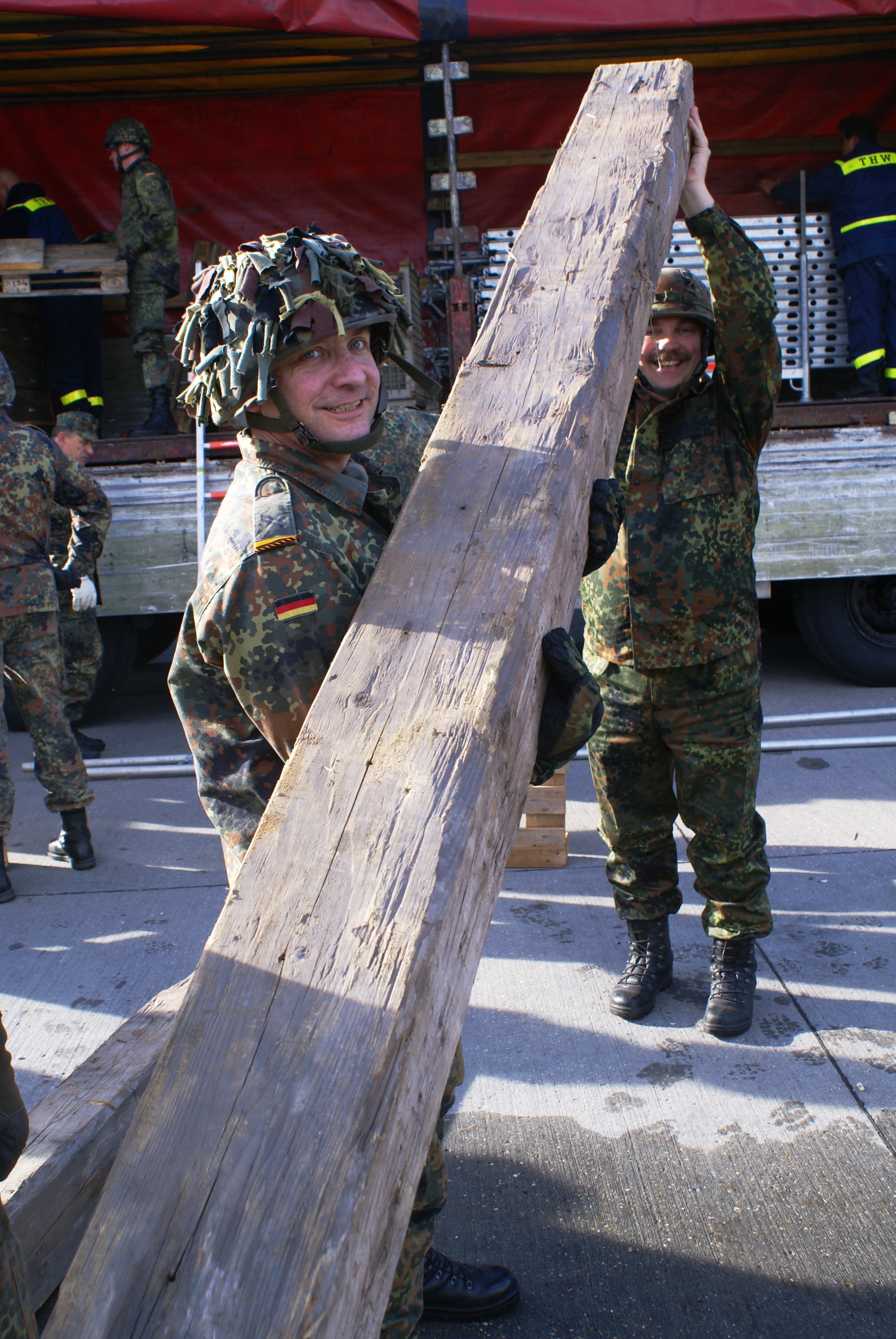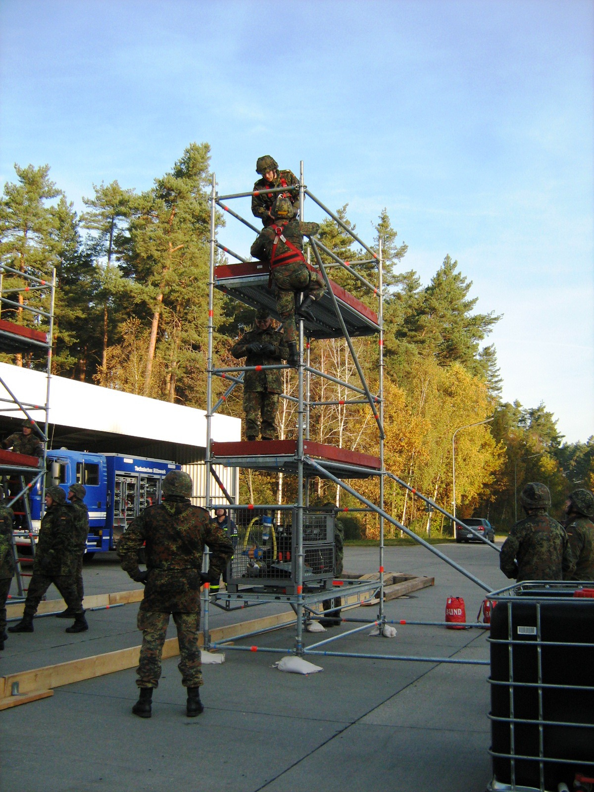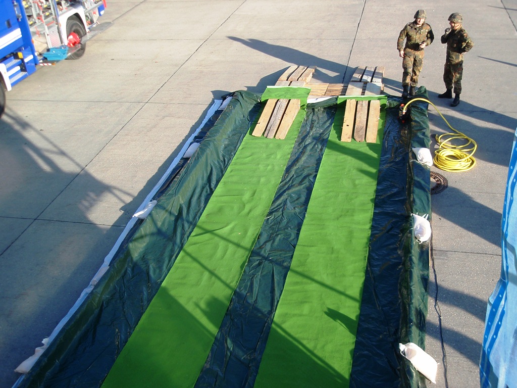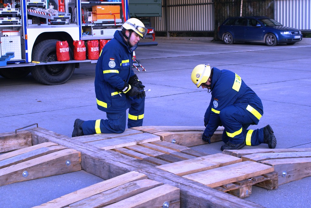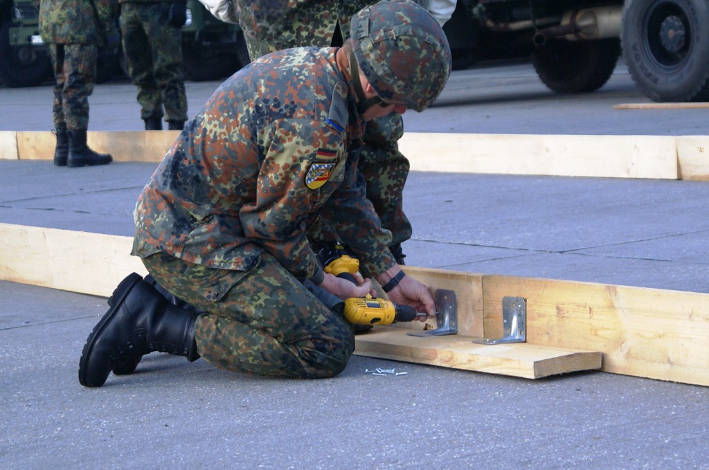 Aus diesem Sachverhalt heraus hat sich die Arbeitsgemeinschaft (AG) ABC-Schutz mit dem THW zusammengetan und in einer gemeinsamen Übung den Aufbau aber vor allem den Betrieb der Dekontaminationsschleuse für Fahrzeuge geübt. Im Grunde unterscheidet sich die Dekontaminationsschleuse nicht wesentlich von Einrichtungen der Bundeswehr. Der Betrieb war daher für die Soldaten auch nichts Ungewöhnliches.