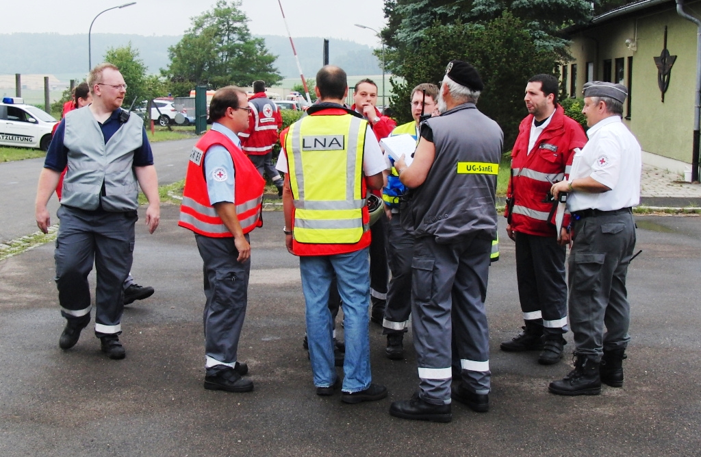 Den vielen Besuchern von der Regierung von Mittelfranken, Polizeidienststellen, THW, Rotes Kreuz, den Landratsämtern sowie der Bundeswehr (Landeskommando Bayern und Streitkräfteunterstützungskommando aus Köln) und Pressevertretern konnte die Leistungsfähigkeit der Katastrophenschutzkräfte anschaulich unter Beweis gestellt werden. Am späten Nachmittag bei der Abschlussbesprechung konnte dann die Übung erfolgreich beendet werden. Dem Landratsamt Weißenburg-Gunzenhausen gilt hier der Dank, dass es bereit war, eine Übung solcher Größenordnung und mit einem ABC-Thema durchzuführen, das ja in der Öffentlichkeit immer gerne verdrängt wird.