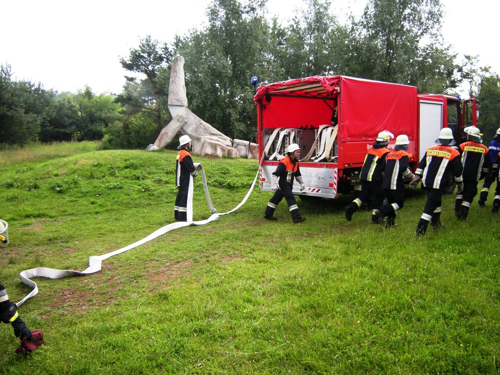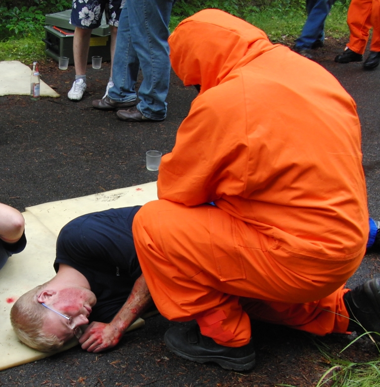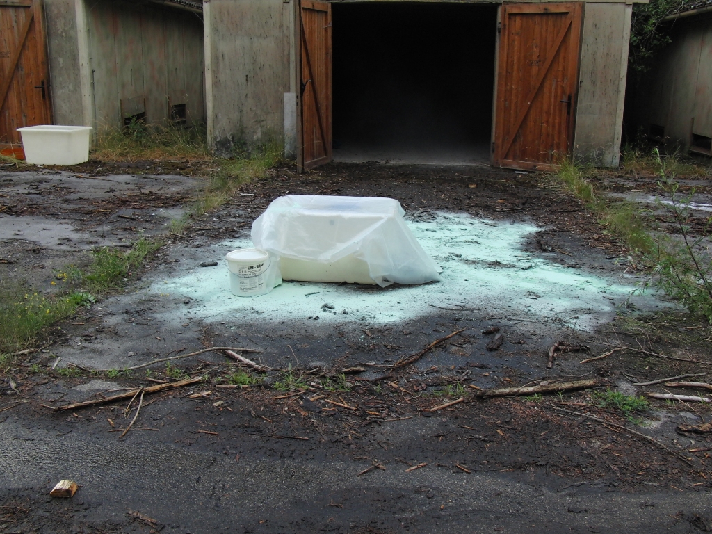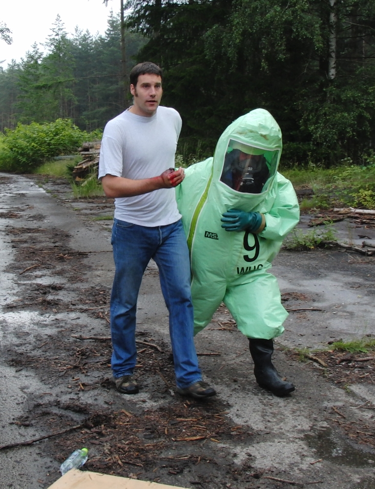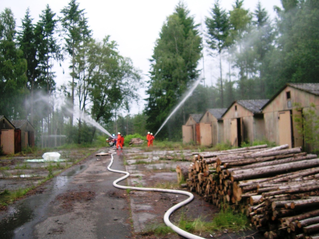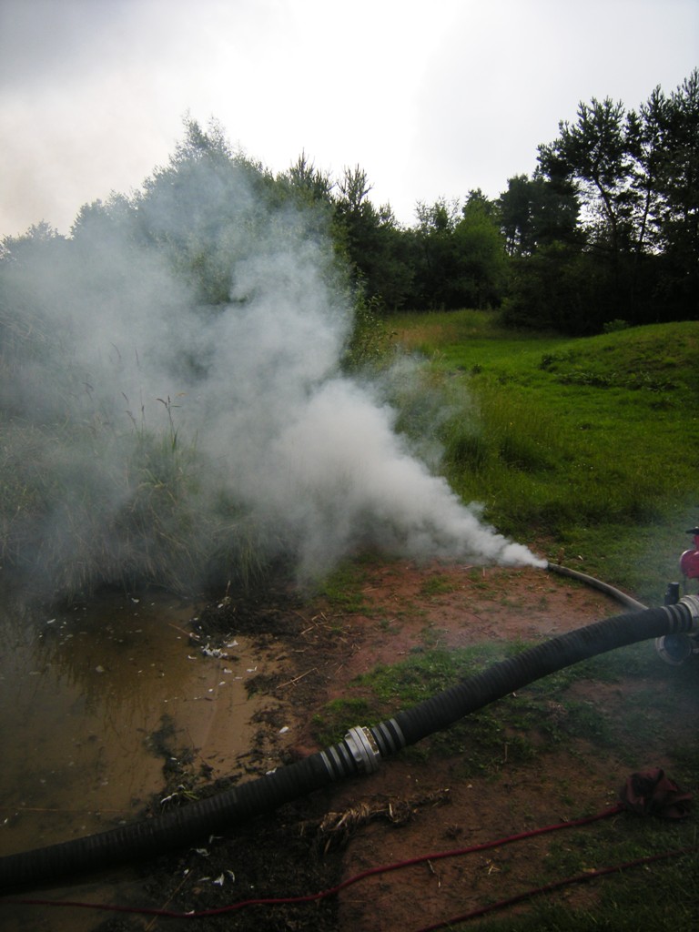 Zurück zum Ausgang: Eines Morgens kurz nach acht Uhr ziehen stechend riechende Dämpfe aus dem Waldstück bei Langlau auf den Ort und das Naherholungsgebiet Brombachsee zu. Um 08.30 Uhr ging in der Notrufzentrale die Meldung ein, dass Fässer mit Chemikalien in Brand geraten sind. Die örtlichen Feuerwehren wurden zur Absicherung und der Gefahrgutzug der Feuerwehr Weißenburg wurde zum Einsatz an der Schadensstelle alarmiert. Beim Eintreffen kamen den Feuerwehrleuten zwei Arbeiter entgegen, die aus der Schadensstelle geflüchtet waren. Sie gaben die Meldung ab, dass neun weitere Arbeiter verletzt bei den brennenden Fässern liegen.