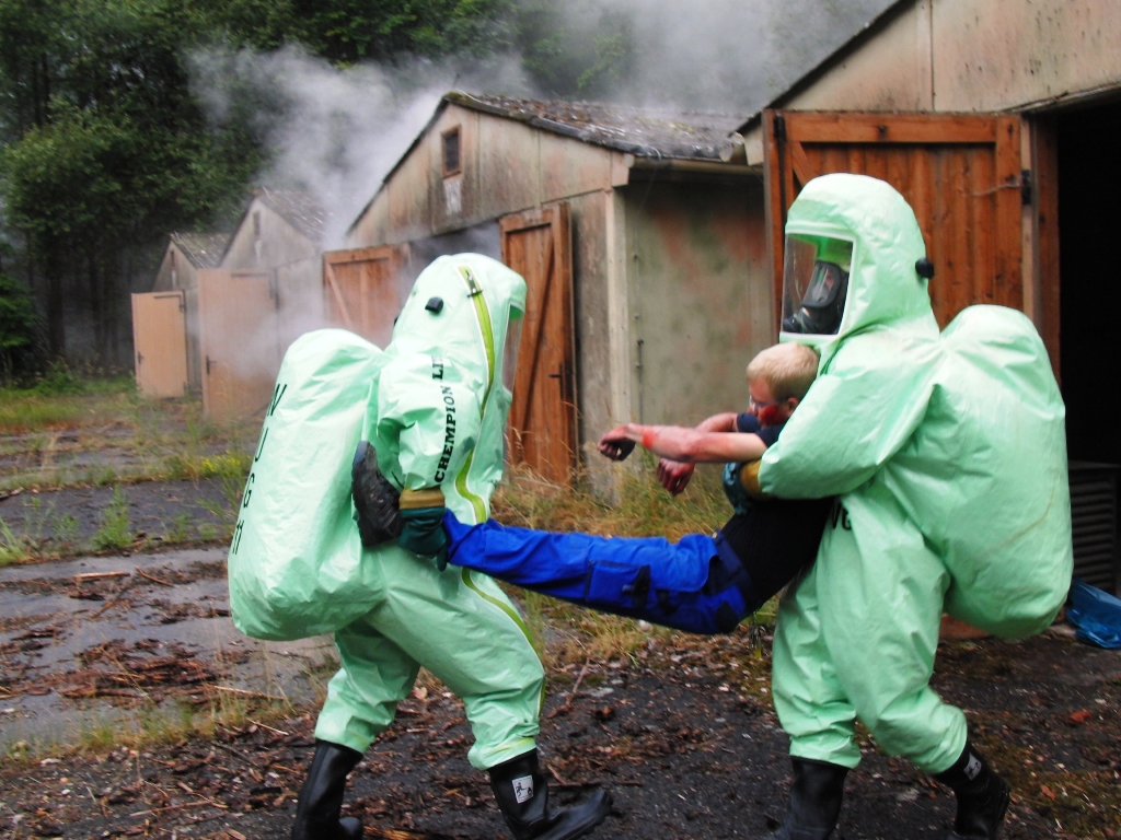 Beim Abtransport von Altlasten aus dem Bereich der ehemaligen Munitionsniederlage in Langlau haben sich Fässer mit gefährlichen Chemikalien entzündet. Der Brand gerät sehr schnell außer Kontrolle und breitet sich auf weitere Fässer aus. Bei Löschversuchen werden mehrere Arbeiter mit der Chemikalie kontaminiert. Durch den andauernden Brand breitet sich die Kontaminationswolke immer weiter aus und zieht auf das Naherholungs- und Urlaubsgebiet Langlau mit dem Brombachsee. Erste Zivilpersonen haben sich bereits mit gesundheitlichen Beschwerden an die Rettungsleitstelle gewandt. Weitere größere Gruppen im Naherholungsgebiet befinden sich im Ausbreitungsgebiet der Kontaminationswolke. Mit weiteren kontaminierten Personen ist zu rechnen.