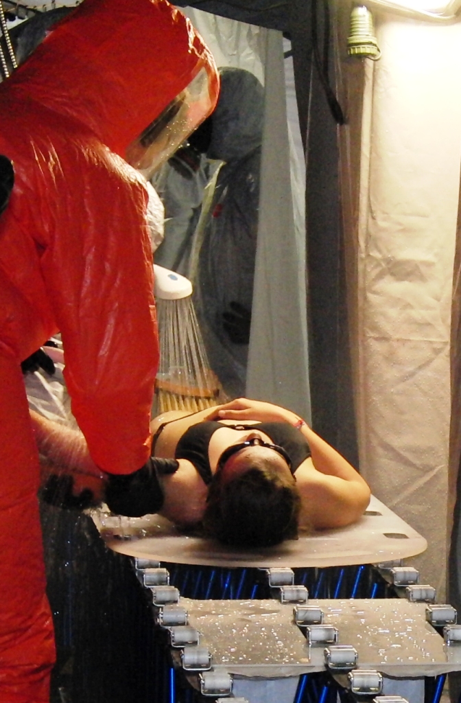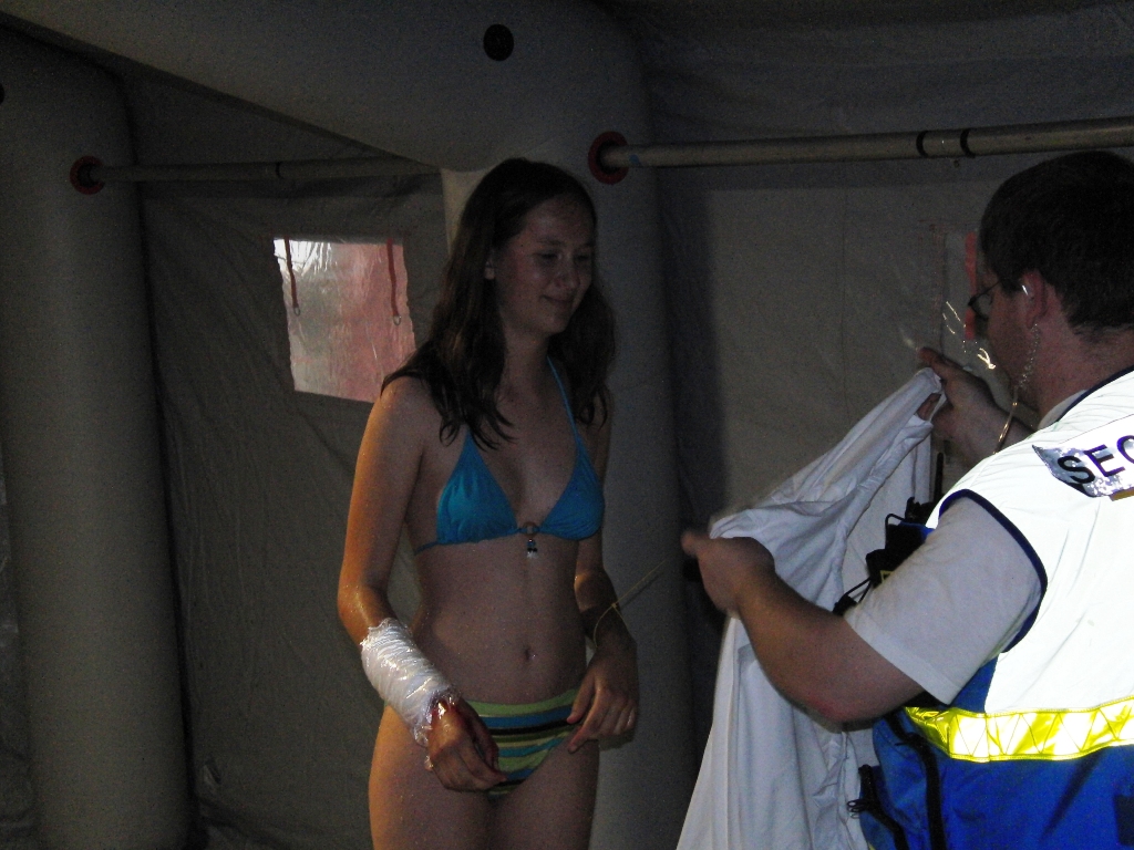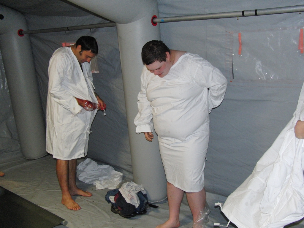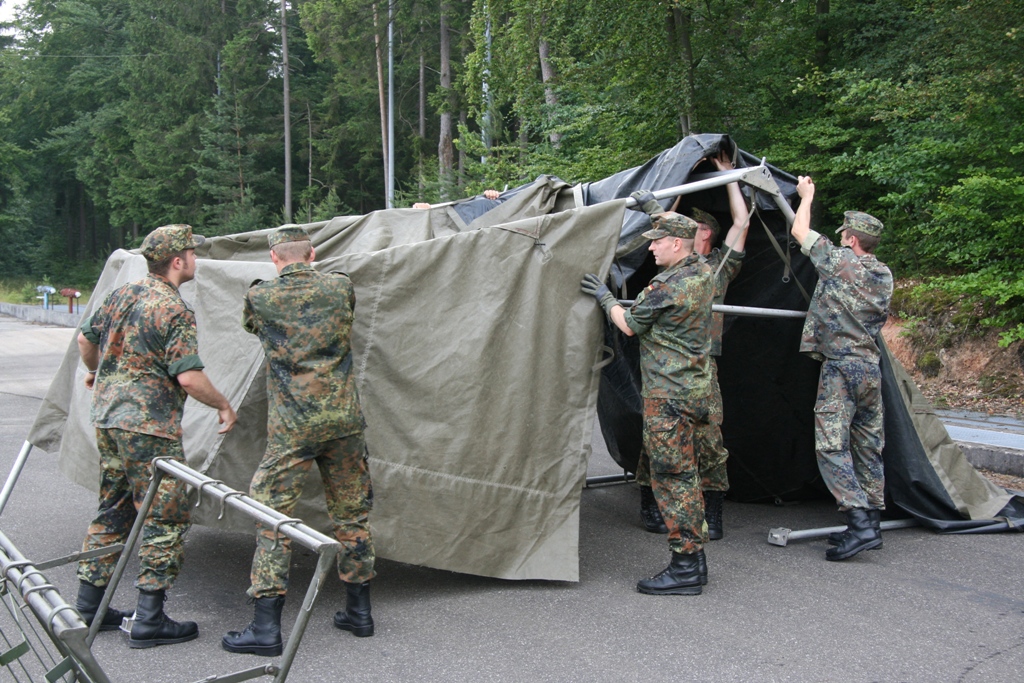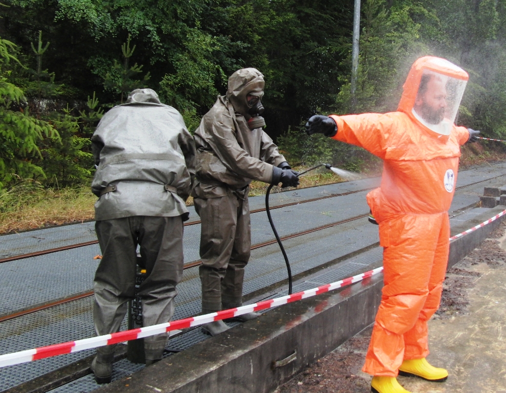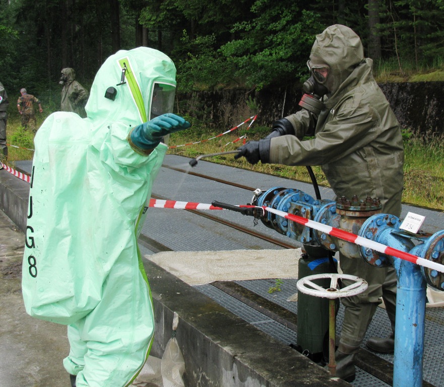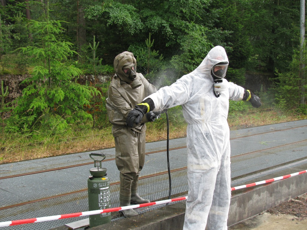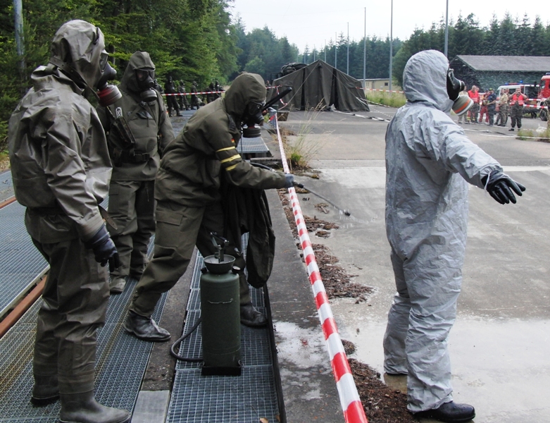 Nachdem immer weitere Meldungen von kontaminierten Personen eingehen, wurde über das KVK die Bundeswehr um Unterstützung bei der Dekontamination von Personen ersucht. Da sich gerade die Reservisten der AG ABC-Schutz Mittelfranken-Ost unter der Leitung des Landeskommando Bayern mit Unterstützung der leichten ABC-Abwehrkompanie 120 in der nahe gelegenen Otto-Lilienthal-Kaserne in Roth einer Dekontaminationsausbildung befanden wurde nach Genehmigung durch das Wehrbereichskommando IV "Süddeutschland" die AG ABC-Schutz unter Leitung der leichten ABC-Abwehrkompanie 120 zum Einsatz bei der Katastrophe abgeordnet.