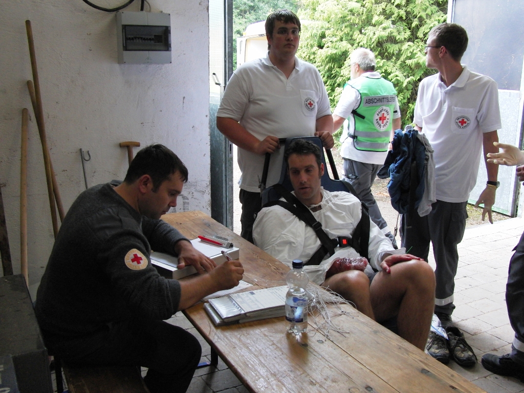 Nach drei Stunden war dann fast die gesamt Maschinerie in der Umgebung der Schadensstelle aufgefahren: Örtliche Einsatzleitung und Sanitätseinsatzleitung waren mit ihren Unterstützungsgruppen vor Ort. Die Gefahrgutzüge hatten die Verletzten kontaminierten Personen aus dem Gefahrenbereich gerettet. Die ABC-Schutzkomponente des Landkreises hatte mit Unterstützung der SEG GSG des BRK eine Dekontaminationsstelle für Verletzten eingerichtet, eine von zwei im Regierungsbezirk Mittelfranken vorhandenen Dekontaminationseinrichtungen. Die Bundeswehr betrieb eine Dekontaminationsstelle für Unverletzte Personen und stellte Ablösepersonal für den zivilen ABC-Dienst zur Verfügung. Das BRK war mit ihren Einheiten Behandlung, Rettung und Transport, Betreuung vor Ort und hat eine Unfallhilfsstelle eingerichtet und betrieben. Ebenso wurde eine Verpflegungsstelle errichtet. Die Brandschutzkomponente hatte sich um die Wasserversorgung für die Brandbekämpfung und Dekontamination gekümmert. Vier Stunden nach Auslösung des Alarms waren fast 300 Helfer im Einsatz. Nach sieben Stunden Einsatz konnte langsam an den Rückbau gedacht werden.
