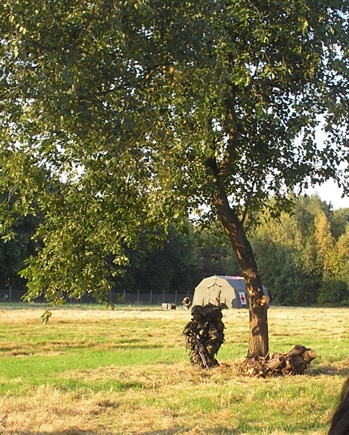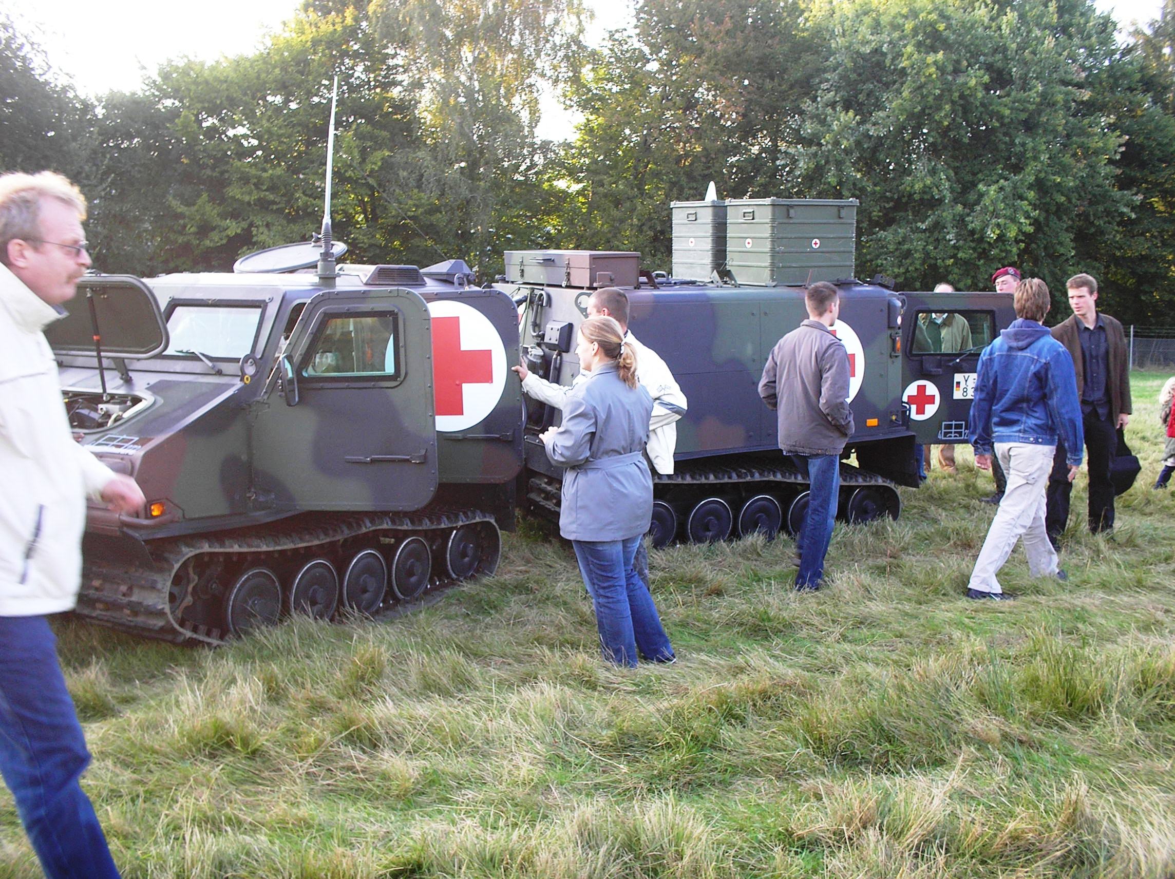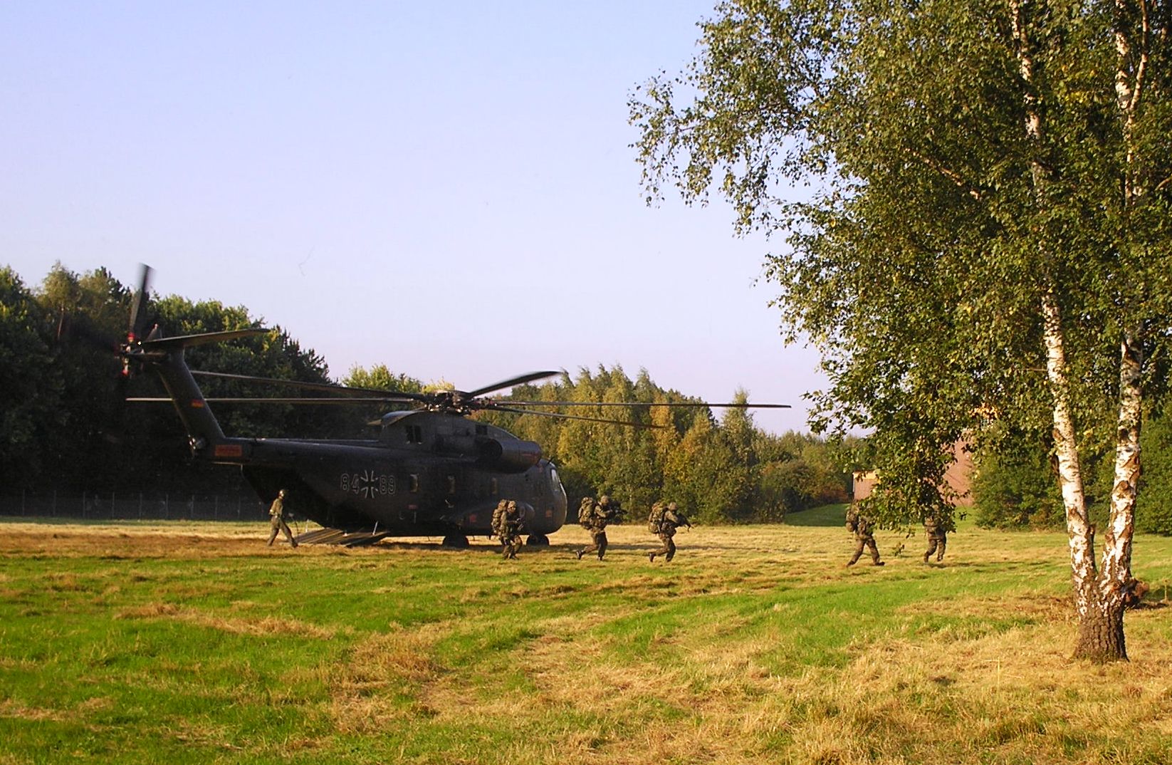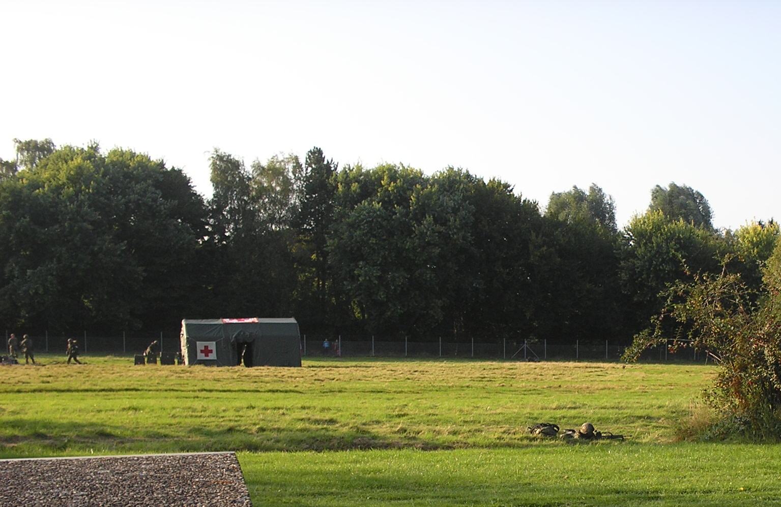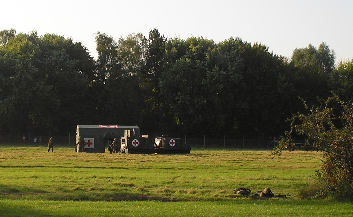 Der Ablauf war eindrucksvoll. Nach dem Absetzen der auf Paletten verlasteten Luftlanderettungsstation ging alles ganz schnell. In etwas über 10 Minuten war die die Rettungsstation aufgebaut und einsatzbereit. Eine Behandlung ähnlich wie in einem Notarztwagen wäre möglich. Bei Bedarf kann aber auch noch ein gepanzerter Sanitäts-Wolf nachgeführt werden. Das "Arbeitstier" mit dem dies alles ermöglicht wird, ist der Transporthubschrauber CH 53.