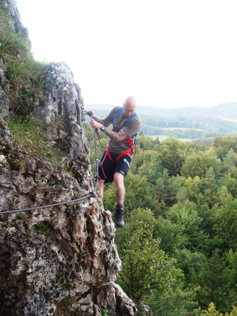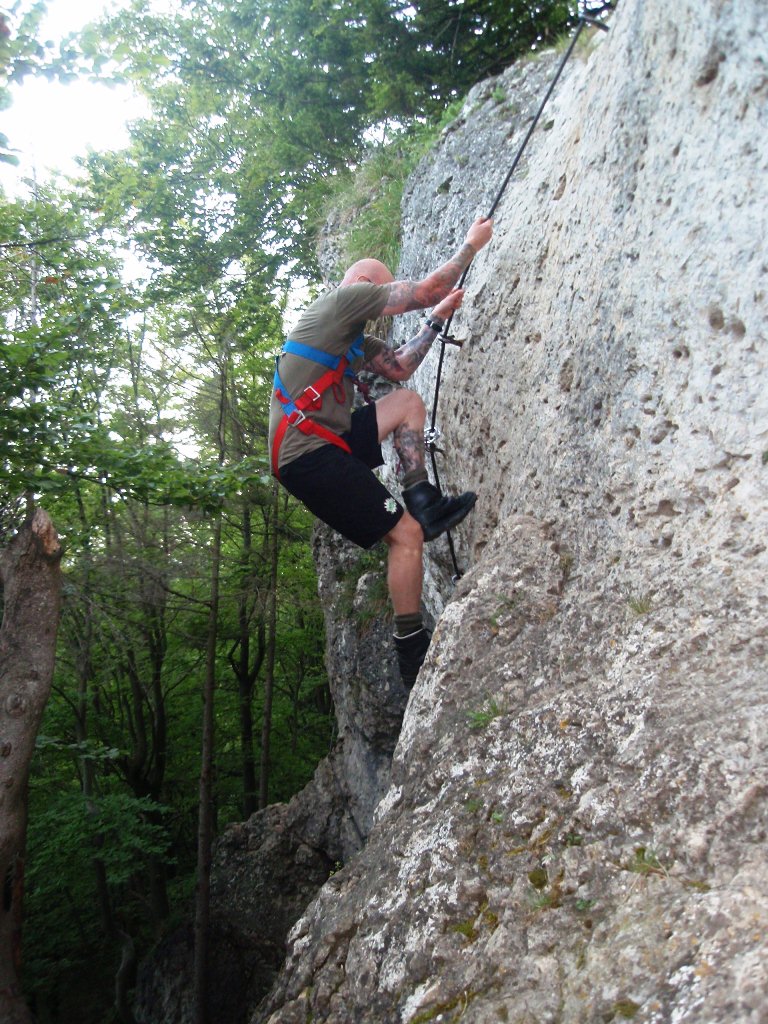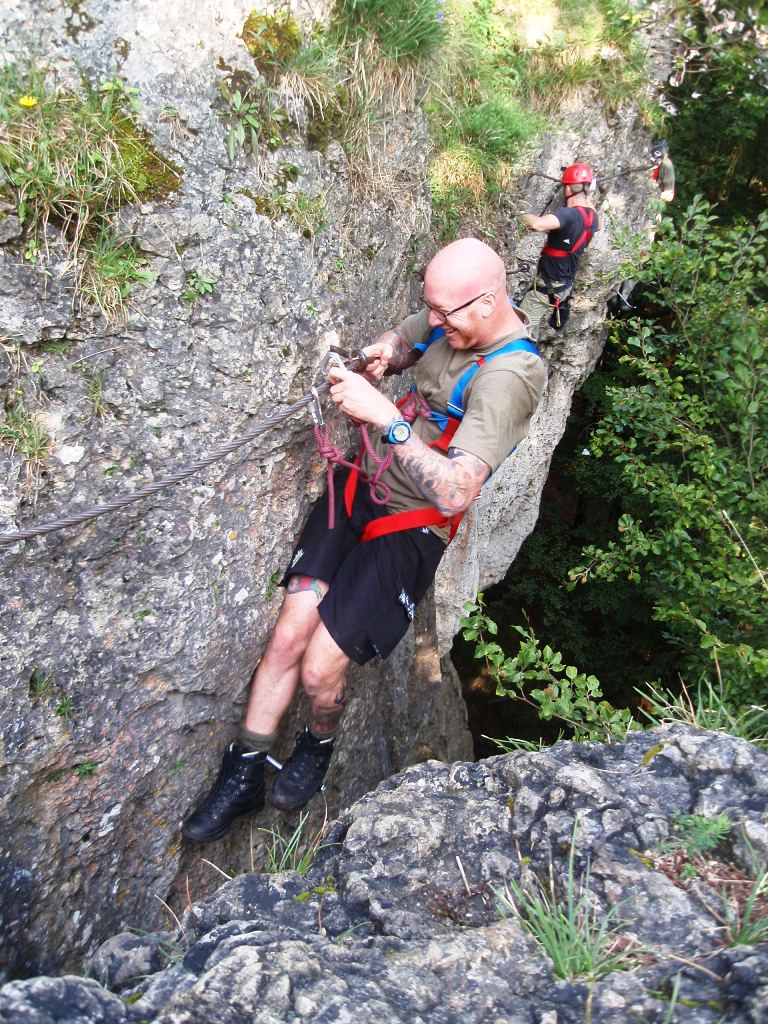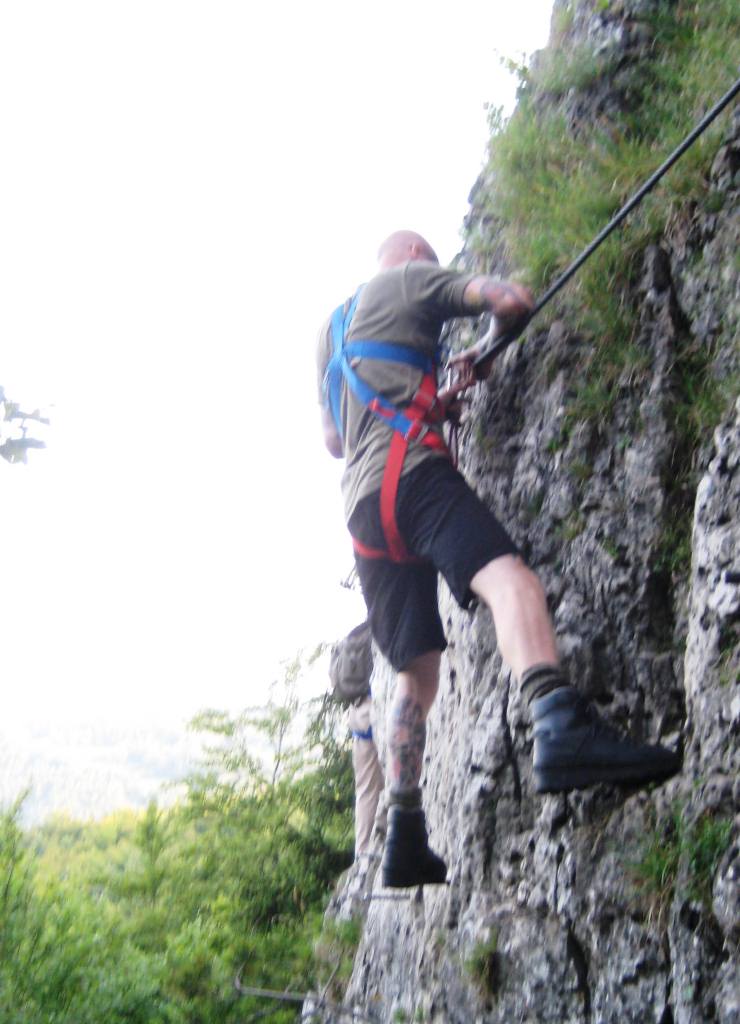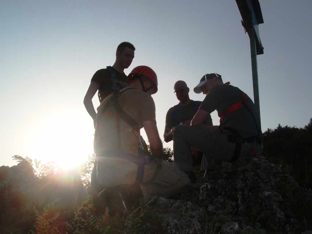 In den Sommermonaten ist dieser immer überlaufen. Zudem sollte der Sonntag sehr heiß werden. Was lag also näher, als in der Morgendämmerung einzusteigen. Es war herrlich, alleine durch den Klettersteig zu gehen und sich bei den einzelnen Stellen nicht immer hinten anzustellen. Die Temperaturen waren auch noch akzeptabel. So konnte die Begehung des Höhenglücksteiges wieder einmal mit den Reservisten der RK Nürnberg erfolgen. Beim Rückmarsch zum Parkplatz kamen uns dann die ersten Wanderer entgegen. Wir waren hier unterwegs zu unserem zweiten Frühstück.