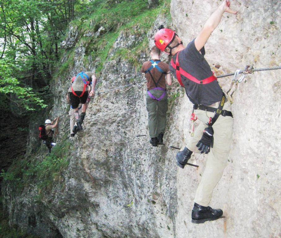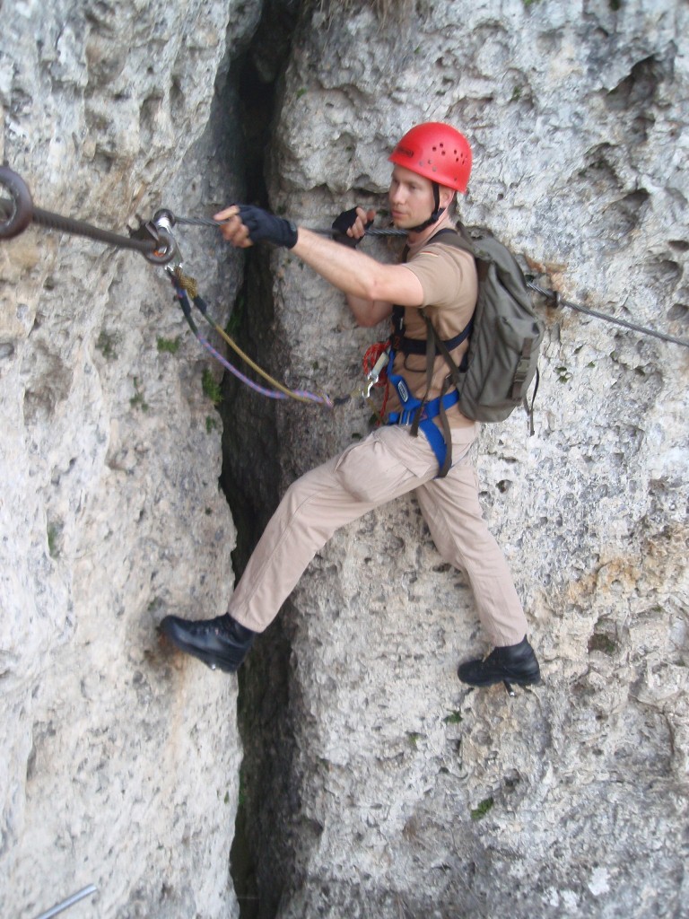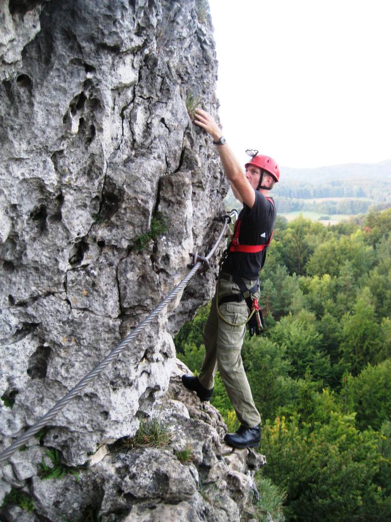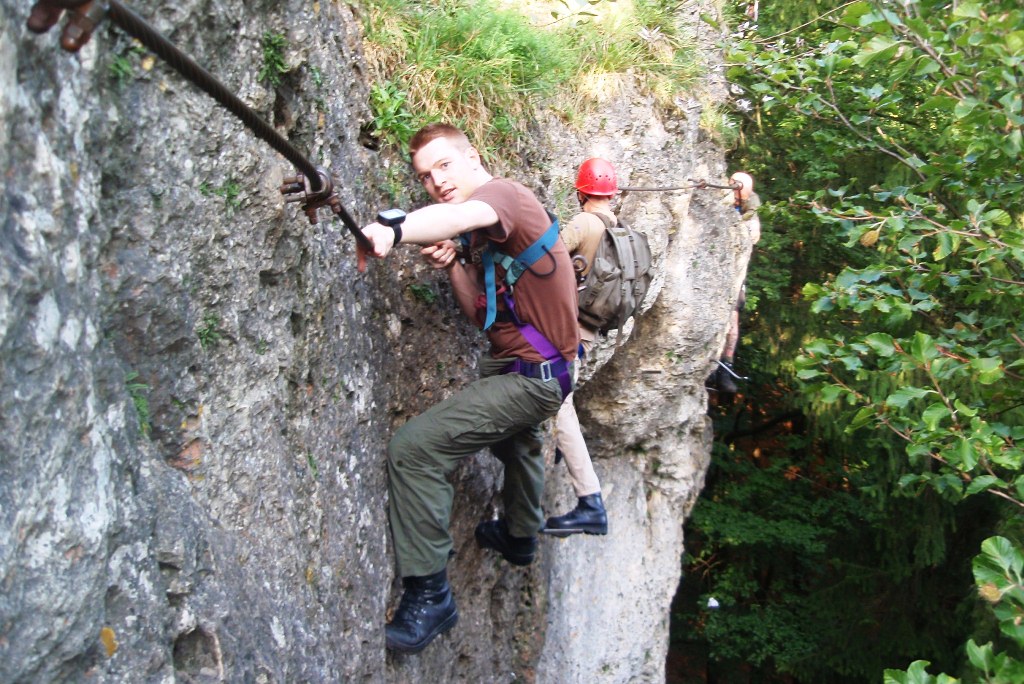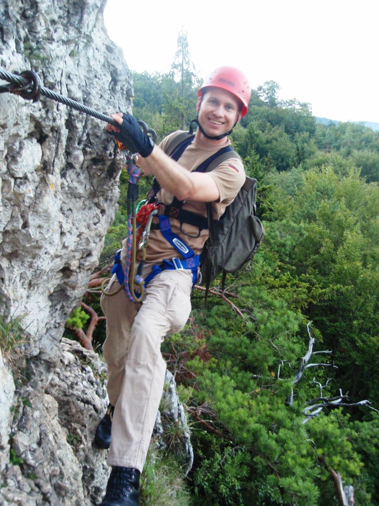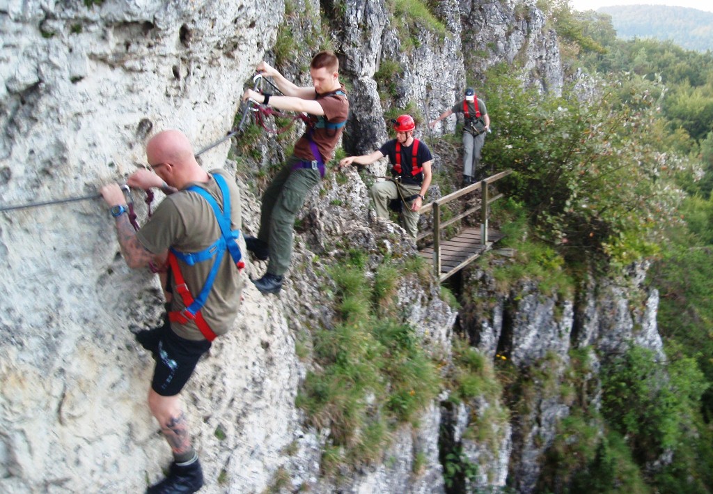 In den Sommermonaten ist dieser immer überlaufen. Zudem sollte der Sonntag sehr heiß werden. Was lag also näher, als in der Morgendämmerung einzusteigen. Es war herrlich, alleine durch den Klettersteig zu gehen und sich bei den einzelnen Stellen nicht immer hinten anzustellen. Die Temperaturen waren auch noch akzeptabel. So konnte die Begehung des Höhenglücksteiges wieder einmal mit den Reservisten der RK Nürnberg erfolgen. Beim Rückmarsch zum Parkplatz kamen uns dann die ersten Wanderer entgegen. Wir waren hier unterwegs zu unserem zweiten Frühstück.