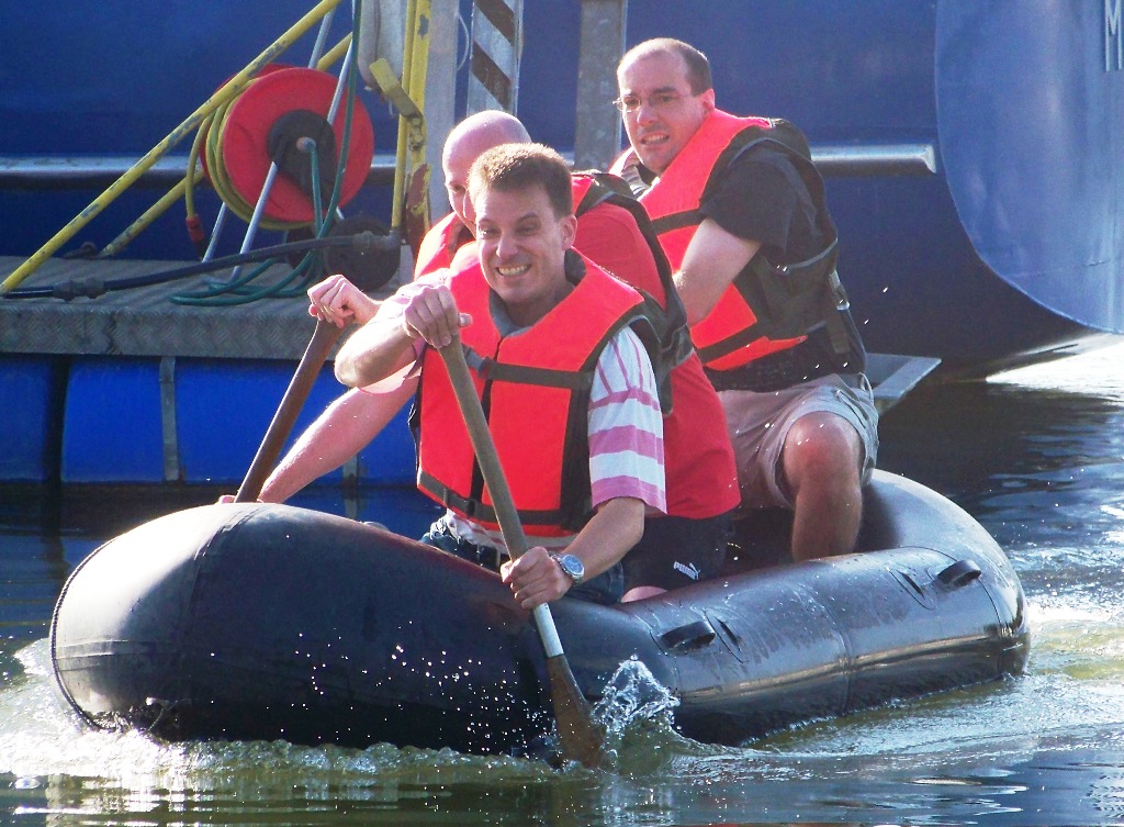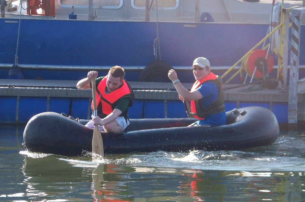 Durch unsere Domizil beim Yachtclub und die Nähe des Wassers bietet sich ein Schlauchbootrennen an. Sechs Mannschaften gingen an den Start und hatten jede Menge Spaß.