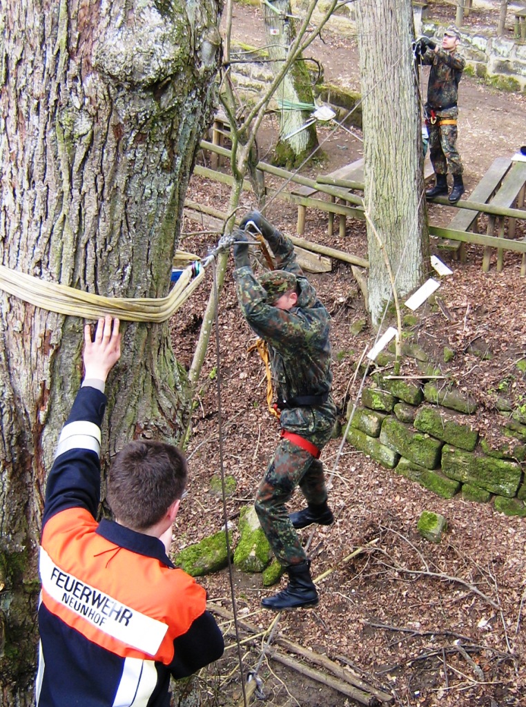 Neben Erste Hilfe (Herz-Lungen-Wiederbelebung), Schlauchbootfahren, Seilsteg, Hindernisbahn gab es auch eine KFZ-Kontrolle oder Sicherheitspolitische Fragen.