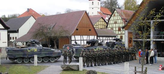 Wie sieht die Leistungsfähigkeit des deutschen Heeres, insbesondere die einer Brigade bei einem Stabilisierungseinsatz aus? Dieses Ziel sollte mit der Informationslehrübung SÜD des deutschen Heeres an der Infanterieschule Hammelburg durch die Brigade 37 "Freistaat Sachsen" gezeigt werden.