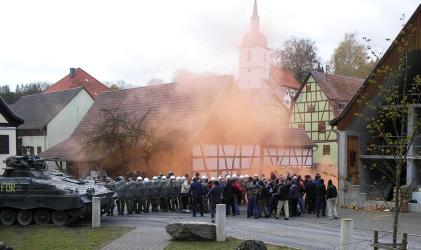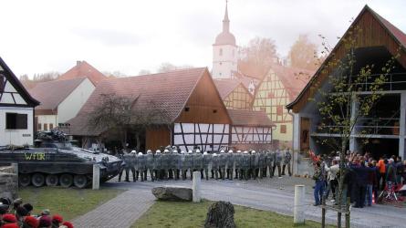 Das Ziel der Vorführung "Das Heer in Operationen niedriger und mittlerer Intensität" in friedensstabilisierenden Einsätzen konnte anschaulich vermittelt werden. Ebenso wurde deutlich, dass auch bei einem Stabilisierungseinsatz kurzzeitig und örtlich begrenzt eine Eskalation auftreten kann, dies die Fähigkeit zum Kämpfen erfordert.