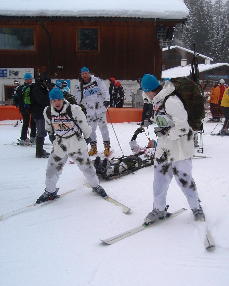 Der Skizug starte in der klassischen Disziplin der Skimeisterschaft, der Militärpatrouille. Bei der Militärpatrouille geht es militärische Fertigkeiten auf Skiern verbunden dem treffsicheren Umgang mit der Waffe sowie Verletztentransport. Jeder der Teilnehmer hatte seine Ausrüstung und seine Waffe dabei (Gewicht etwas mehr als 9 kg), dazu noch den Skischlitten (UT 2000) mit 9 kg.