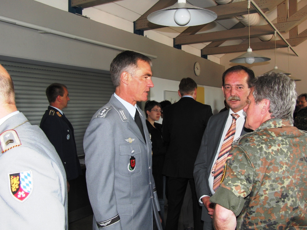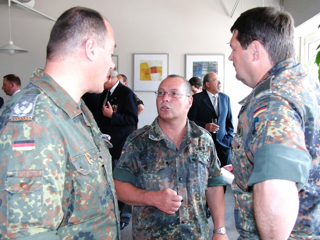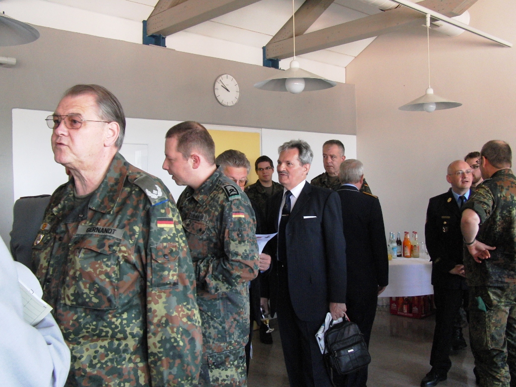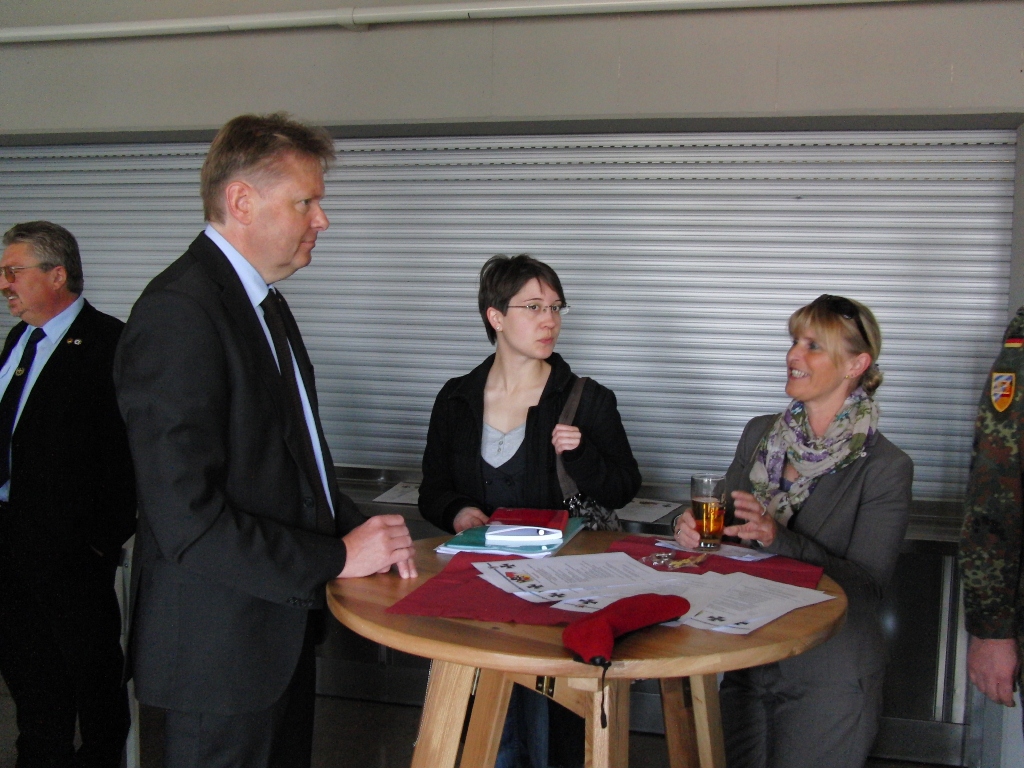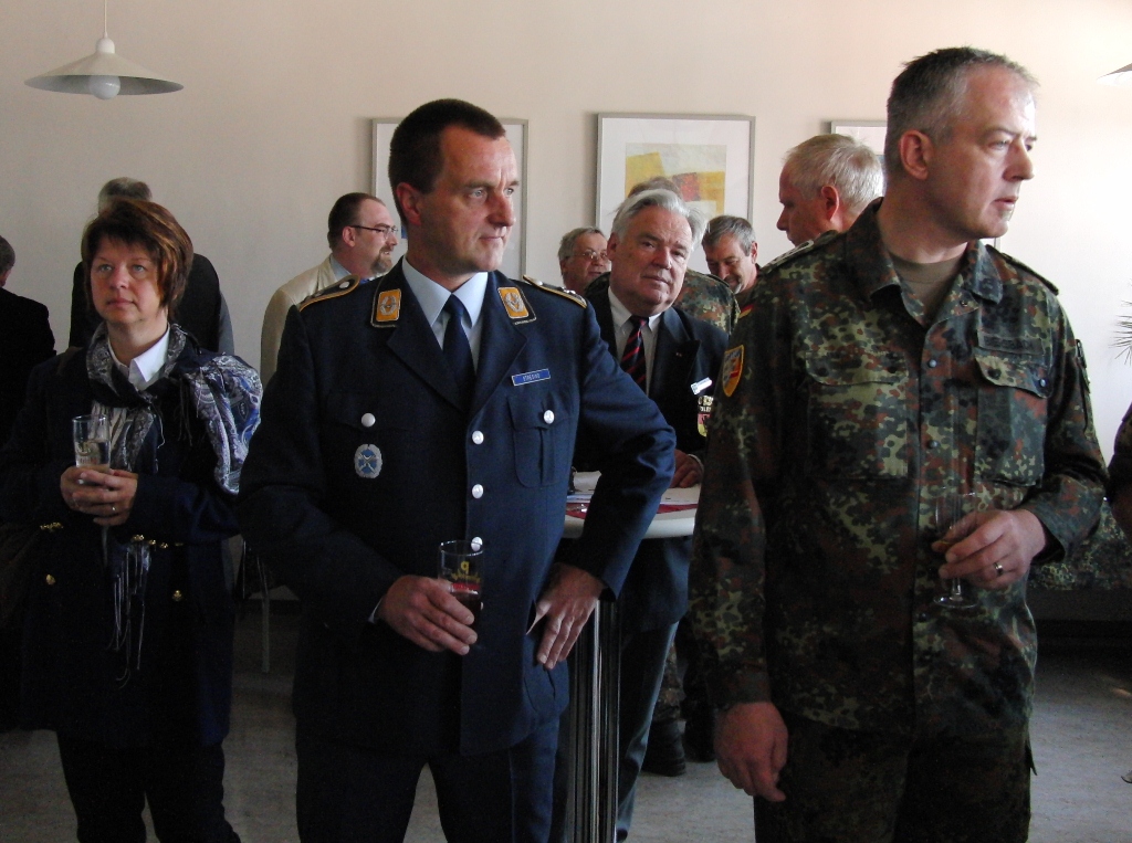 Nach angeregten Gesprächen und einem Imbiss waren die Gäste eingeladen, die Ausstellung über die Leistungsfähigkeit der Reservisten im Hof des Kreiswehrersatzamtes zu verfolgen.