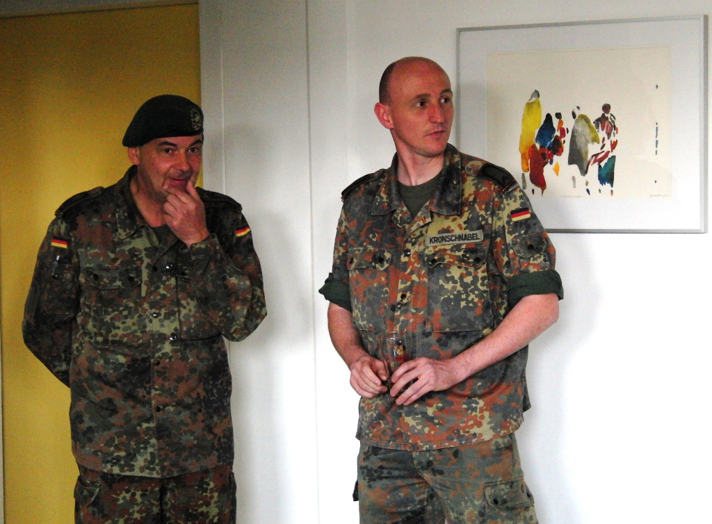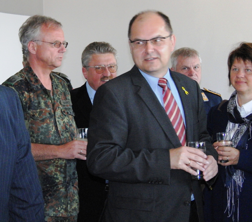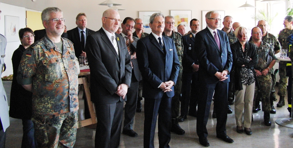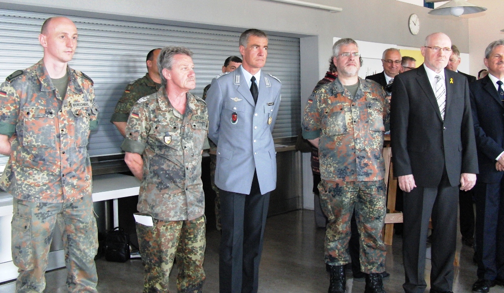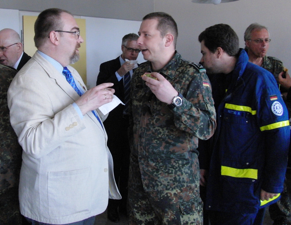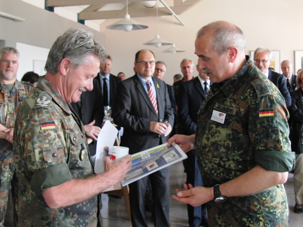 Nach angeregten Gesprächen und einem Imbiss waren die Gäste eingeladen, die Ausstellung über die Leistungsfähigkeit der Reservisten im Hof des Kreiswehrersatzamtes zu verfolgen.