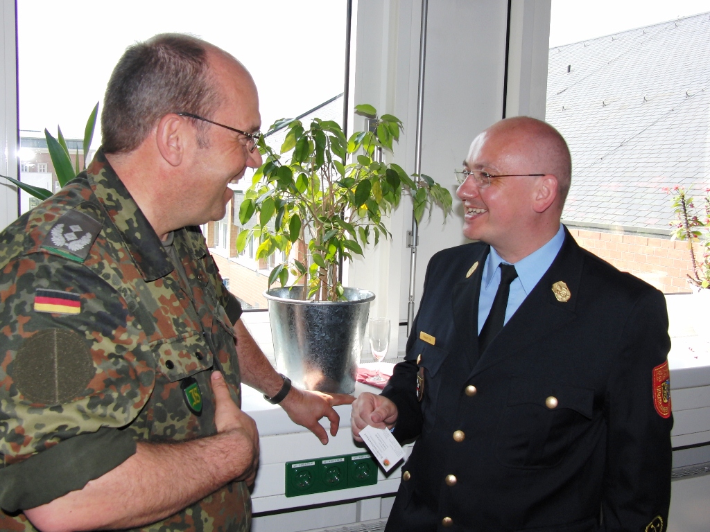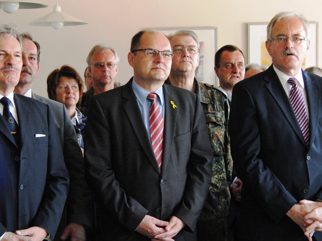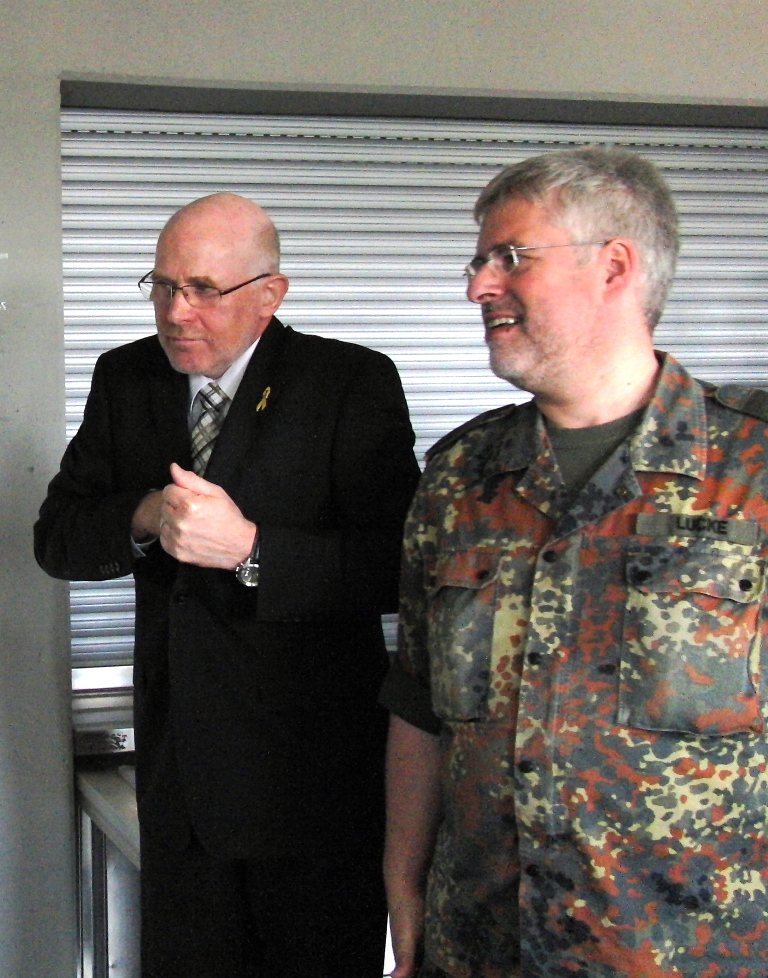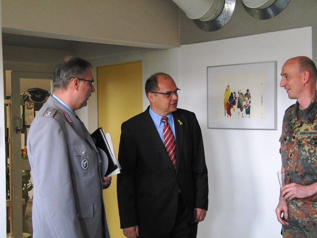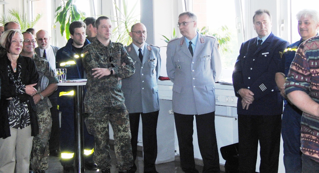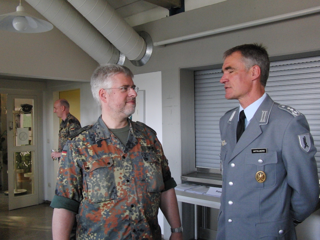 Nach angeregten Gesprächen und einem Imbiss waren die Gäste eingeladen, die Ausstellung über die Leistungsfähigkeit der Reservisten im Hof des Kreiswehrersatzamtes zu verfolgen.