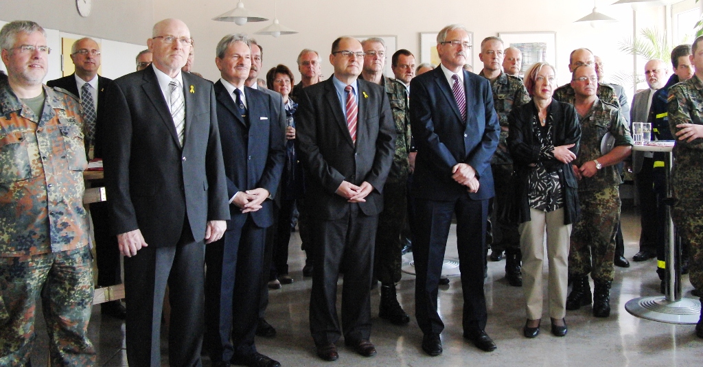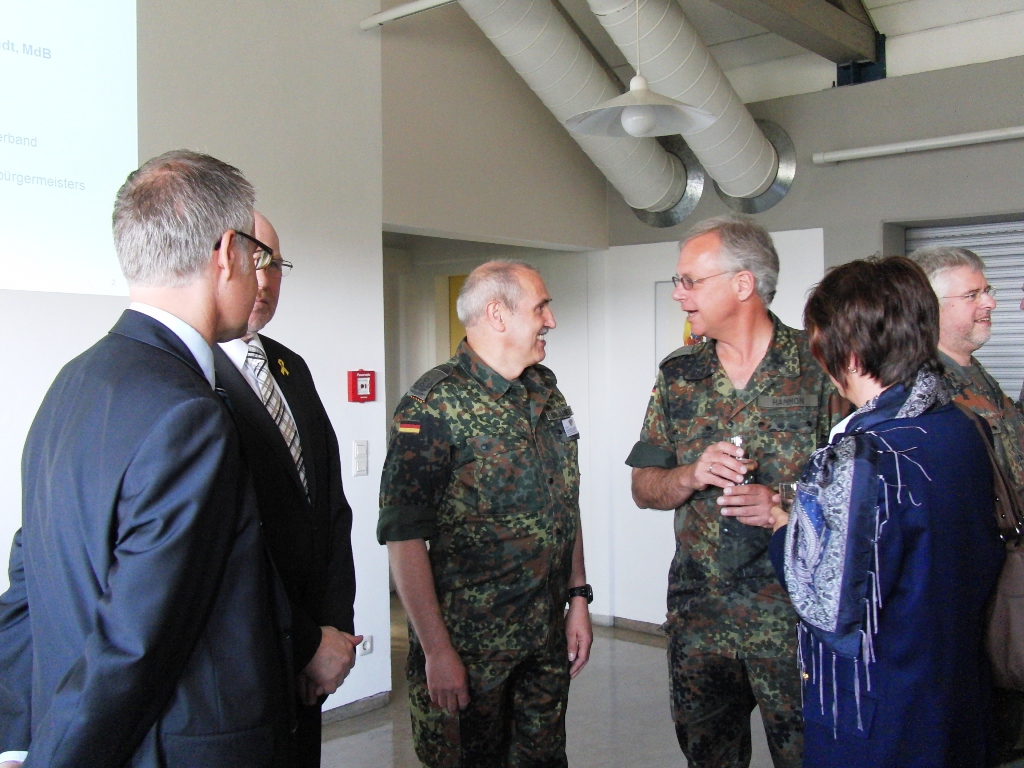 Für den Reservistenverband führten der Landesvorsitzende Oberstleutnant der Reserve Prof. Dr. Friedwart Lender sowie der Bezirksvorsitzende Major der Reserve Reinhard Gernandt die Notwendigkeit der Reservisten für eine Verankerung der Bundeswehr in der Bevölkerung aus. Gerade bei einer so tiefgreifenden Reform wie der derzeitigen, muss die Basis und die Gesellschaft mitgenommen werden. Hier sollte noch mehr Verlässlichkeit und Unterstützung durch die Politik erfolgen.