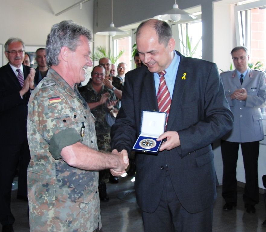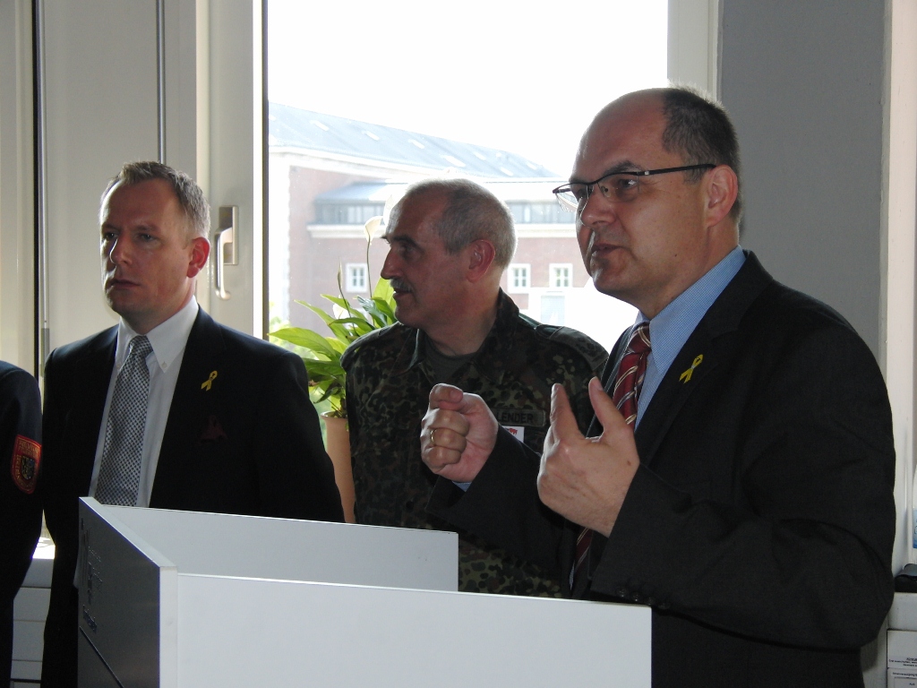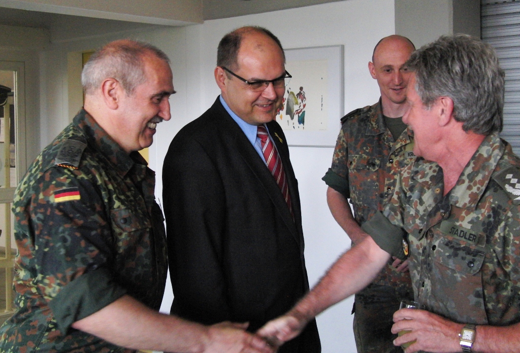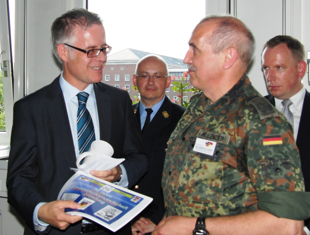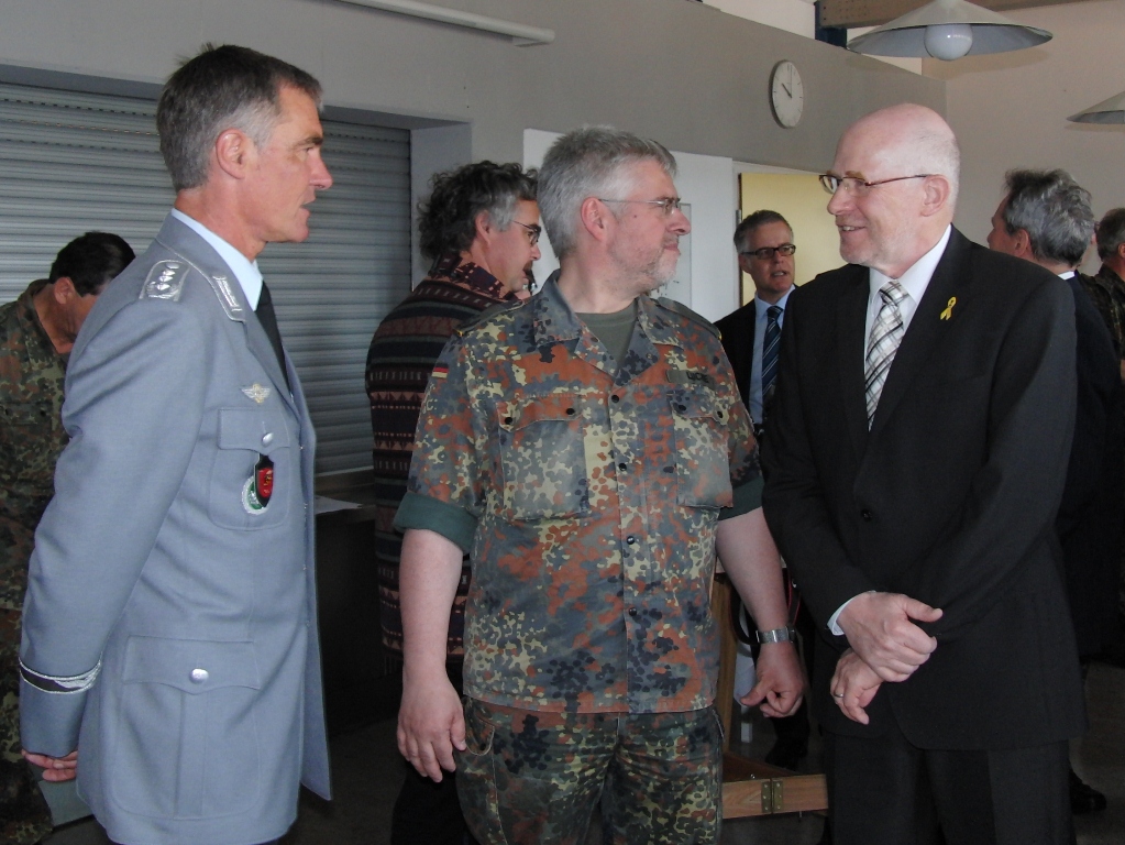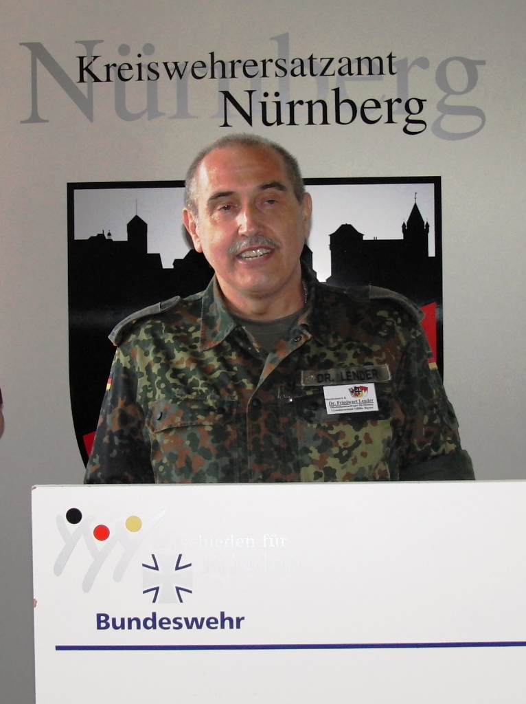 Leitender Regierungsdirektor Gerd Eickmeyer, Leiter des Kreiswehrersatzamtes Nürnberg und Vorsitzender der Sektion Nürnberg-Fürth in der Gesellschaft für Wehr- und Sicherheitspolitik betonte ebenfalls die veränderte Rolle der Wehrverwaltung. Nicht mehr „Abwicklung“ der Wehrpflichtigen sondern mehr Interesse wecken für den freiwilligen Wehrdienst wird zukünftig die Aufgabe sein.