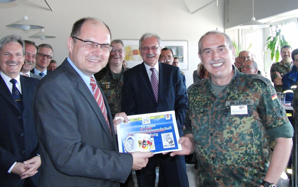 Die Reservisten in Nürnberg und Mittelfranken konnten am 30.04.2011 ihr 50-jähriges Bestehen feiern. Aus diesem Anlass wurden Vertreter der Politik, der Bundeswehr und der befreundeten Vereine zu einem Empfang in das Kreiswehrersatzamt Nürnberg eingeladen. Hochkarätige Gäste konnten hierzu begrüßt werden (Programmablauf). Neben den Bundestags- und Landtagsabgeordneten der Region kamen Vertreter der Stadt Nürnberg, des Stadtrates Nürnberg, der Regierung von Mittelfranken und des Bezirkstages. Ebenso waren Vertreter des THW, BRK, Feuerwehr, ABC-Dienste und DLRG anwesend Für die Bundeswehr waren der Standortälteste für Nürnberg und Roth, Oberst Mittelberg sowie der Kommandeur Landeskommando Bayern, Herr Oberst Stadler mit seinen Stabsoffizieren für Reservistenangelegenheiten vertreten. Die befreundeten Verbände wurden durch den Bundeswehrverband und den Bayerischen Soldatenbund repräsentiert.