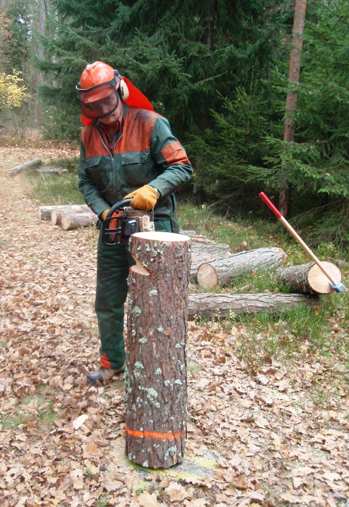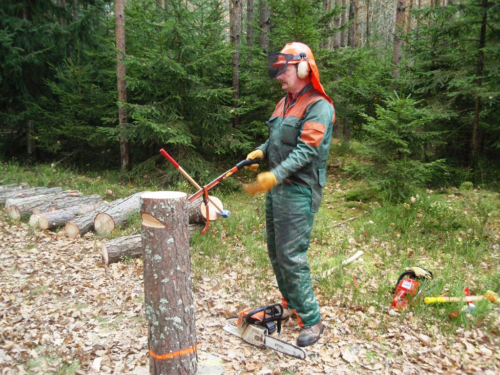Freitag galt der Unterweisung, den Sicherheitsvorschriften, den Säge- und Fälltechniken in der Theorie, der Wartung und dem Betanken der Motorkettensäge sowie dem Schärfen der Ketten. Am Samstag konnten dann praktische Übungen am Holz durchgeführt werden. Neben Schneideübungen und vorbereitenden Übungen zum Fällkerb konnte dann jeder "seinen" Baum fällen und aufarbeiten.