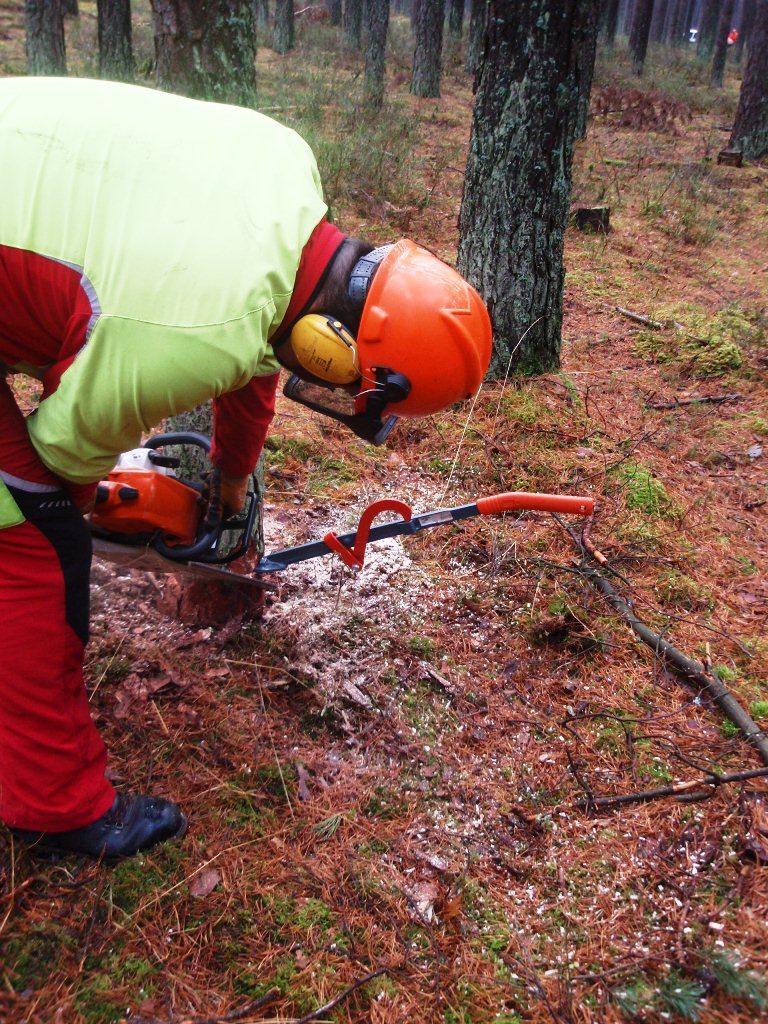 Neben den klassischen Aufgaben dem Fällen von Bäumen mit Fällkerb und Fällschnitt sowie dem Entasten und Ablängen wurde auch der sogenannten Fällheberschnitt geübt. Die Teilnehmer konnten in der ganztägigen Weiterbildung ihre Kenntnisse auffrischen und genügend Stunden zum Übungen nutzen.
