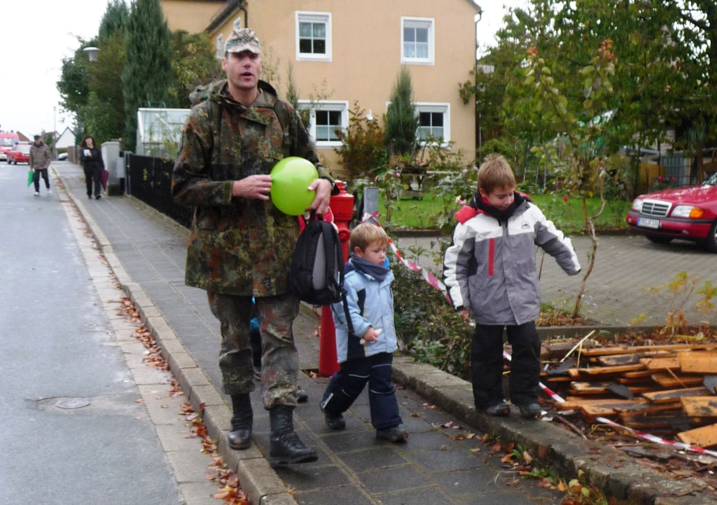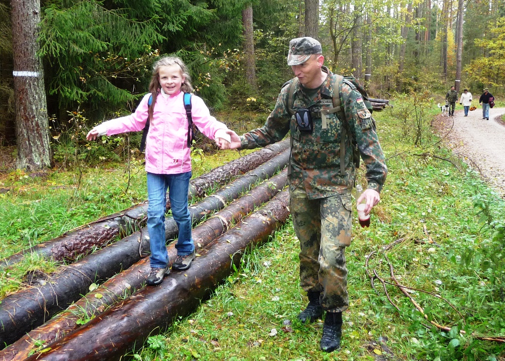Durch die vielen zivilen Teilnehmer kommen die Reservisten - die in Uniform starten - immer ins Gespräch mit den Wanderern und können so Sicherheitspolitik ganz nebenbei machen.