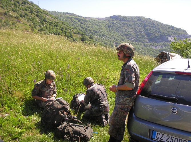 schon am Morgen um 04.00 Uhr überwunden werden musste. Aufgaben wie temporärer und illegaler Checkpoint, Mine Awarness, Schießen (im Steinbruch), FM-Aufgaben,