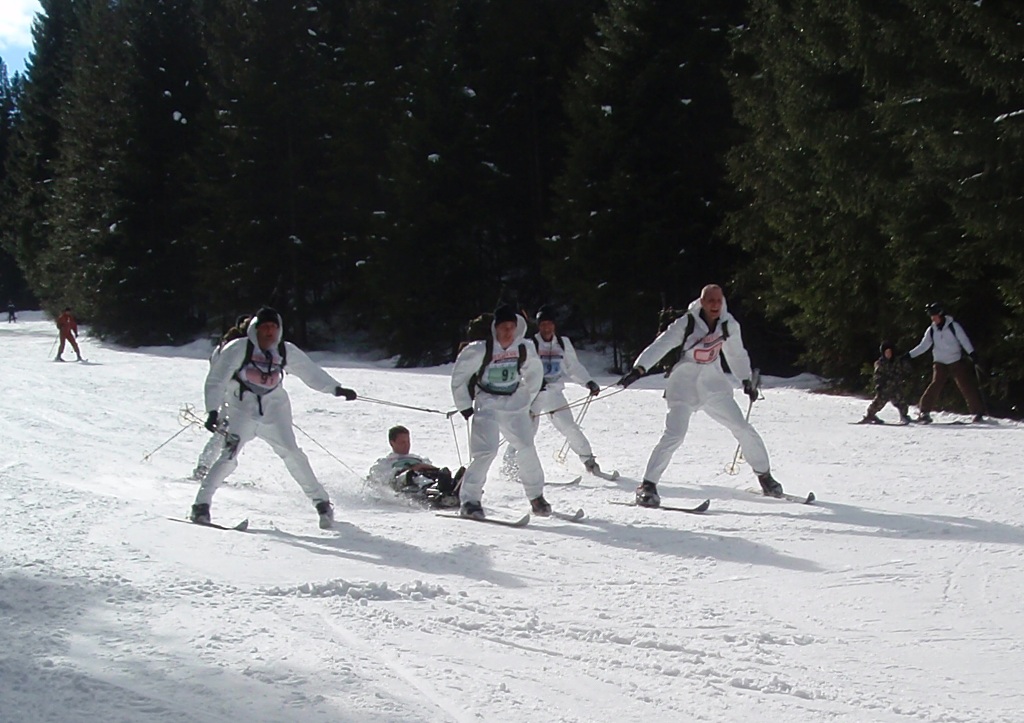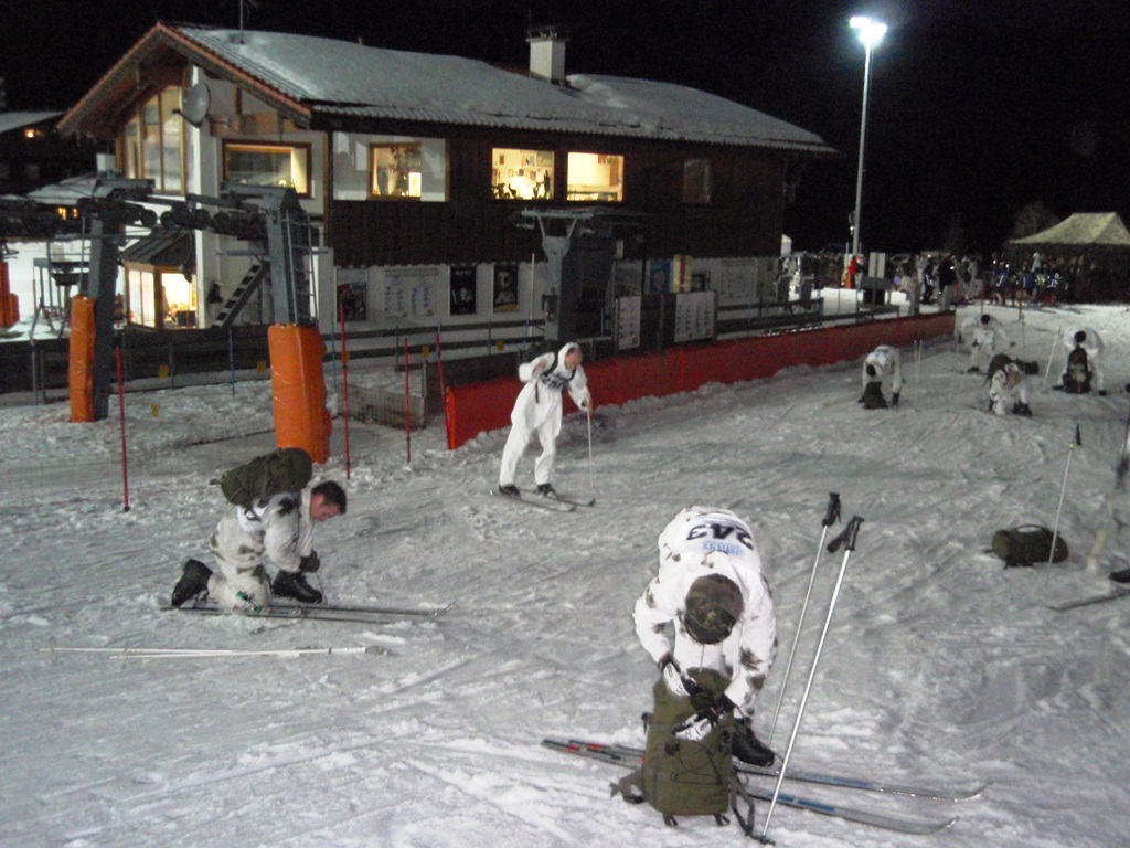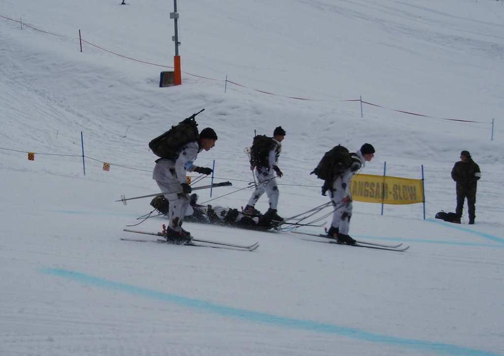 Der Skizug starte in der klassischen Disziplin der Skimeisterschaft, der Militärpatrouille. Bei der Militärpatrouille geht es militärische Fertigkeiten auf Skiern verbunden dem treffsicheren Umgang mit der Waffe sowie Verletztentransport. Jeder der Teilnehmer hatte seine Ausrüstung und seine Waffe dabei (Gewicht etwas mehr als 9 kg), dazu noch den Skischlitten (UT 2000) mit 9 kg. Neben dem Aufstieg auf den Götschen mit Fellen unter den Skiern ging es mit der gesamten Ausrüstung auf die Abfahrt, dann wieder mit Skimarsch zur Biathlonschießanlage Sielberg. Handgranatenwerfen sowie Gruppengefechtsschießen auf Biathlonscheiben rundeten den Teil Sielberg ab. Zurück folgte wieder ein Skimarsch, der dann mit einer rasanten Abfahrt mit dem Skischlitten mit einem "Verletzten" aus der Gruppe abschloss.