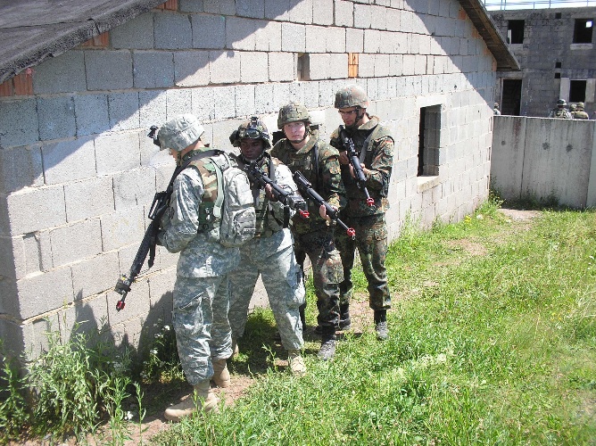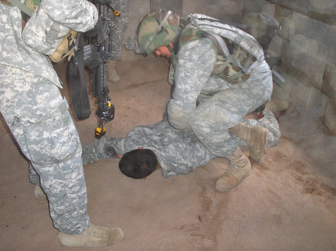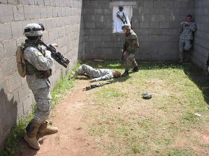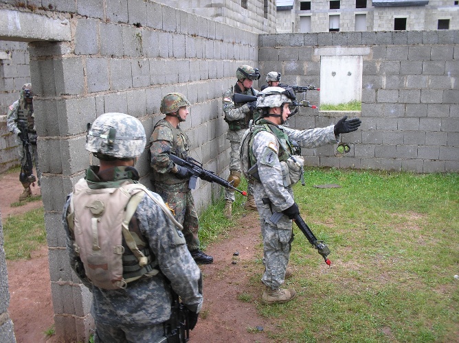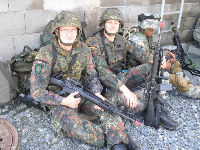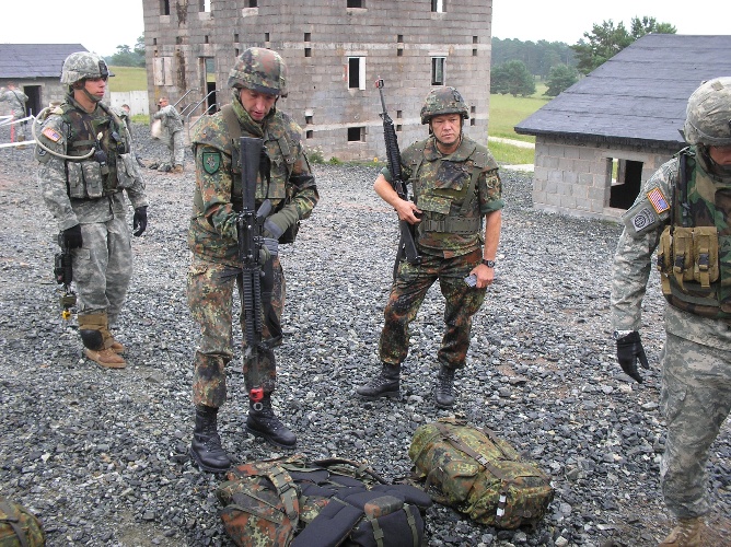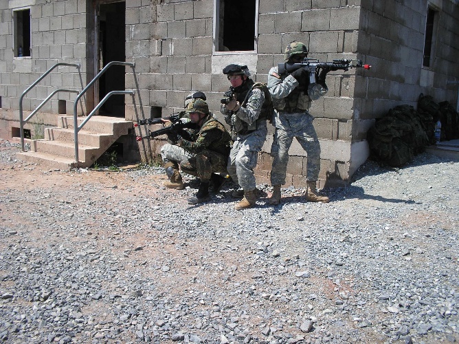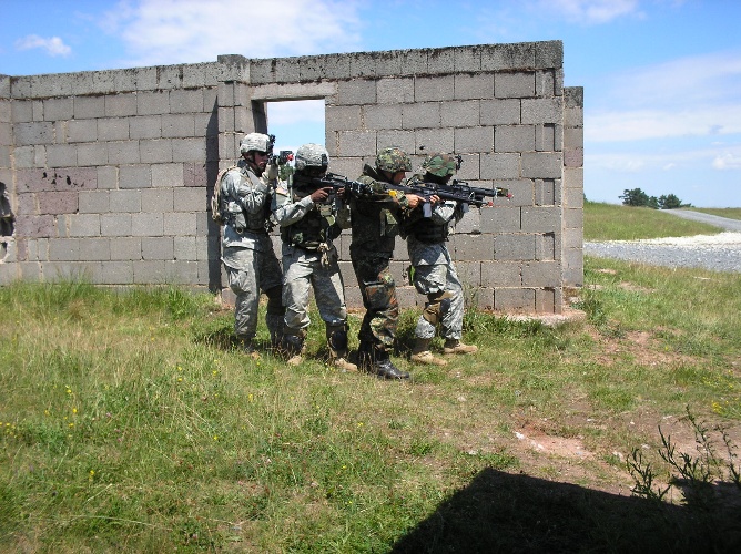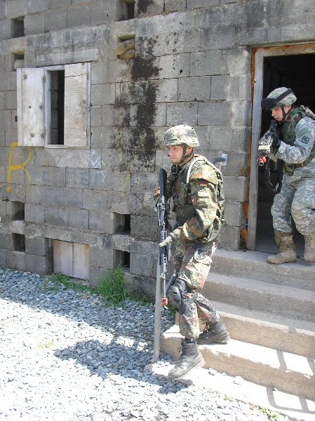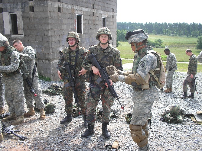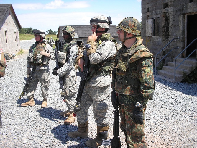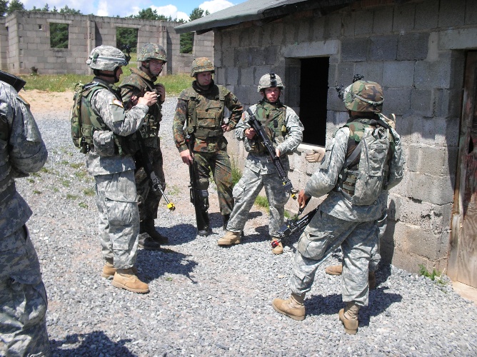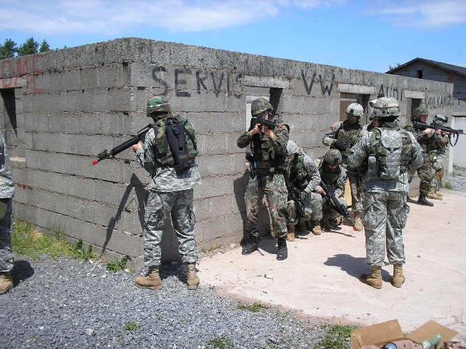 Der ehemalige Orts- und Häuserkampf hat sich in Zeiten von Stabilisierungseinsätzen doch deutlich verändert, auch das Vorgehen im Gebäude. Unsere Kameraden konnten bei der Basisausbildung unserer Pateneinheit dabei sein und den SOP (Standard Operation Procedure) der US Army kennen lernen. Für alle die dabei waren, zwar ein sehr anstrengender Tag, aber ein sehr lehrreicher Tag. Schon das dauerhafte Tragen des Splitterschutzes und des Gefechtshelmes war für viele gewöhnungsbedürftig, beim MOUT-Training im Gebäude aber mit einer ballistischen Brille jedoch Pflicht.