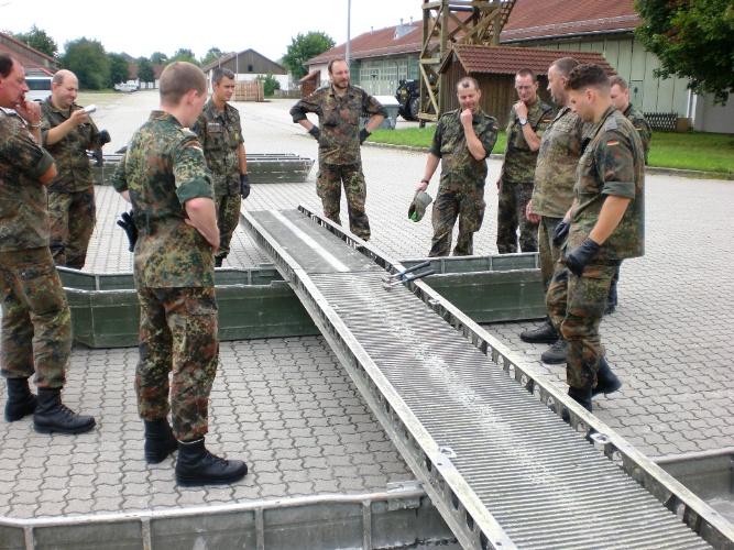 Die Pionierausbildung der Soldaten und Reservisten ist durch die Auslandseinsätze und die Hilfeleistung bei Katastrophen im Inland wieder verstärkt ins Rampenlicht gerückt. Die Reservisten aus der Kreisgruppe Mittelfranken-Ost ließen sich daher am pioniertechnischen Gerät in Münchsmünster einweisen.