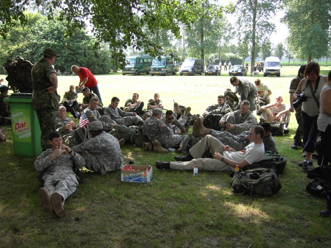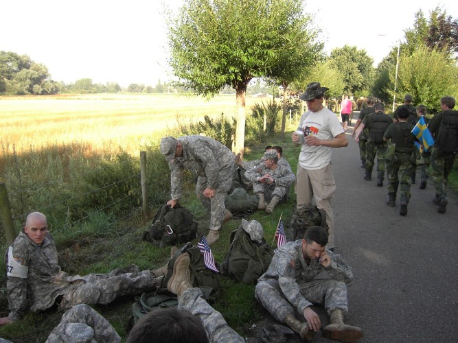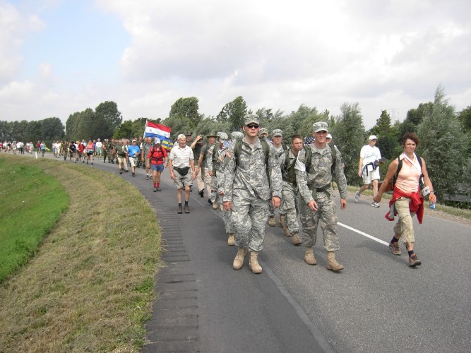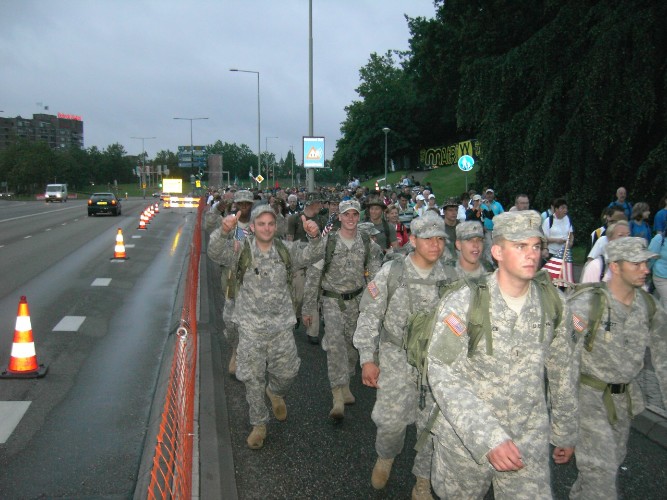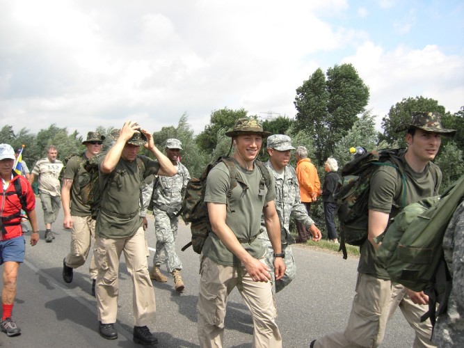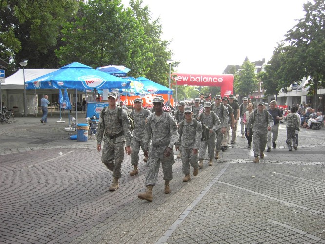 Zusammen mit unserer Pateneinheit, der 370th Engineer Company aus dem 54th Engineer Battalion konnte eine gemischte Mannschaft mit 16 Marschierern am militärischen Teil des Nijemegen-Vier-Tages-Marsches teilnehmen.