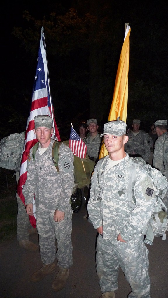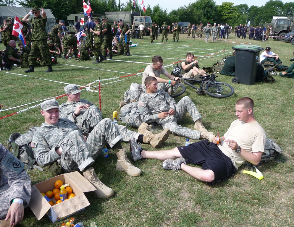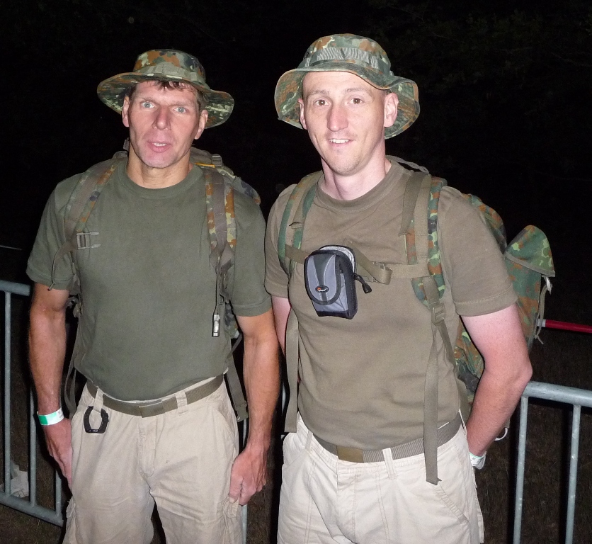 Der Start erfolgt jeden Tag zwischen 04.00 und 06.00 Uhr im Camp. Dann geht es über die Strecke. Ein Begleiter auf dem Fahrrad kann die Truppe versorgen. Interessant sind die Pionierbrücke über den Fluss und vor allem die vielen Zuschauer, die bereits morgens um 04.00 Uhr vor den Häusern sitzen und den Marschieren zuwinken. Den Abschluss eines jeden Marschtages bildet der Einmarsch ins Bierzelt im Camp. Dort ist Brauch, etwas besonderes zu machen. Die Gruppe machte Liegestützen als "Raupe".