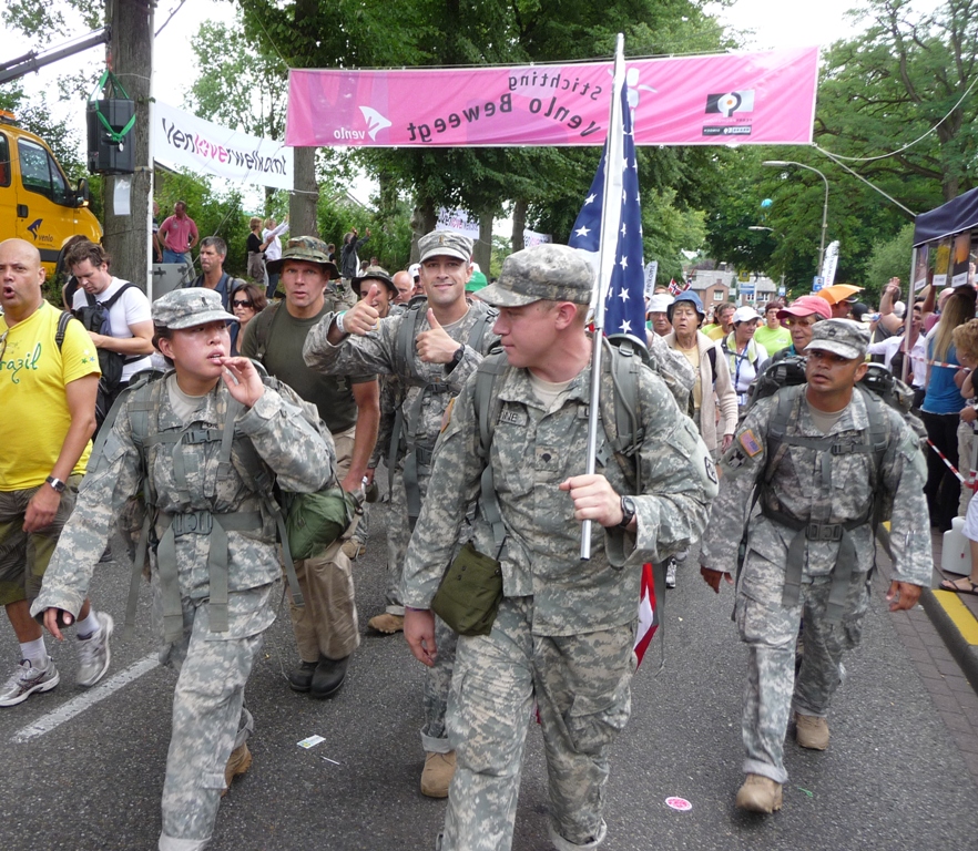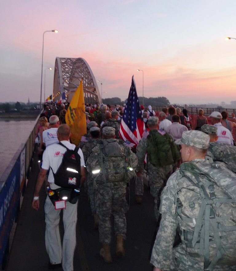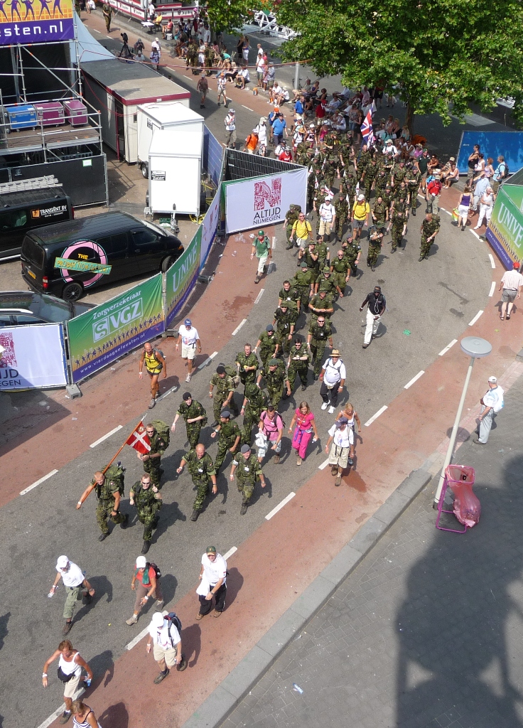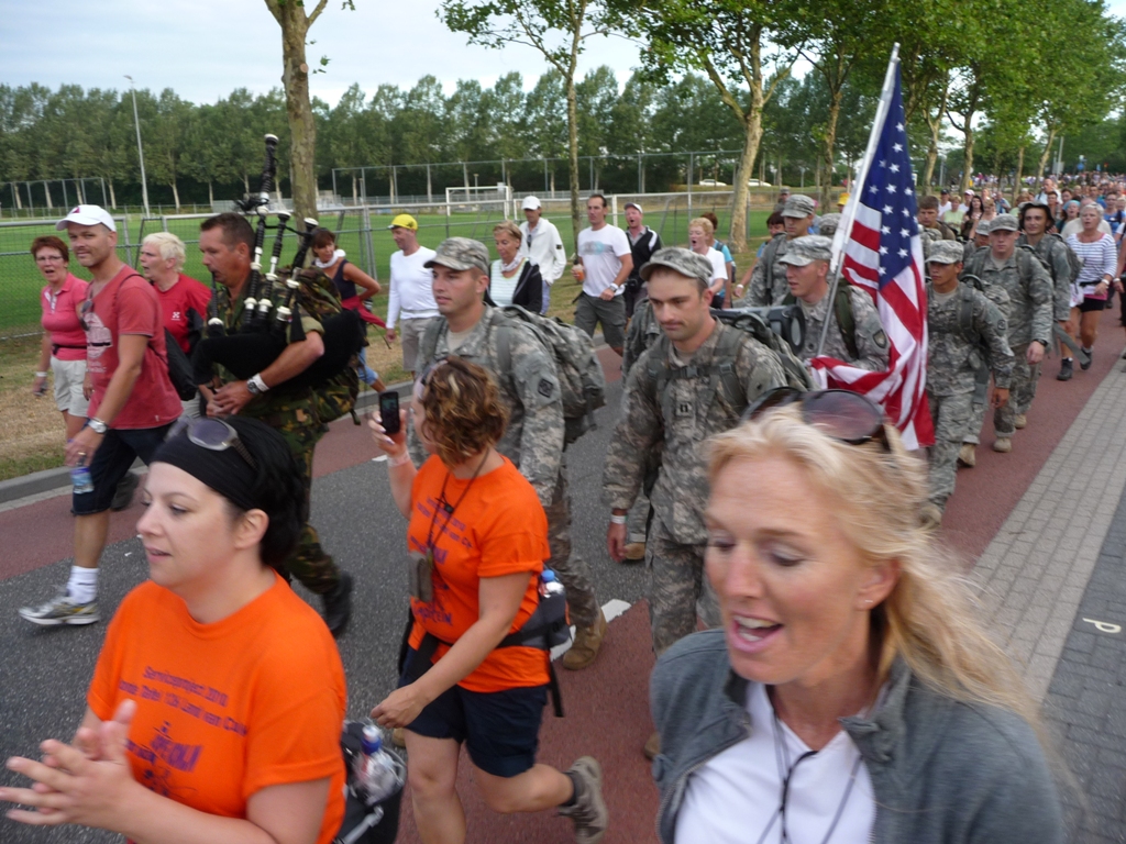 Am vierten Tag ist der Marsch für die Militärs im Süden von Nijmegen zu Ende. Dort erhalten Sie ihren Orden. Anschließend folgt der "Victory March", die letzten 5 km mit Musik ins Zentrum von Nijmegen, begleitet von mehr als 500.000 Zuschauern. Dies ist schon eindrucksvoll und lässt einem die ganzen Strapazen schnell vergessen.