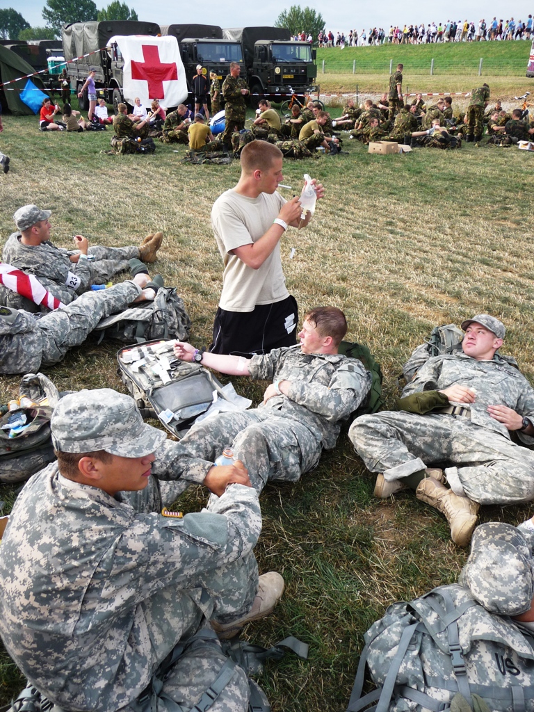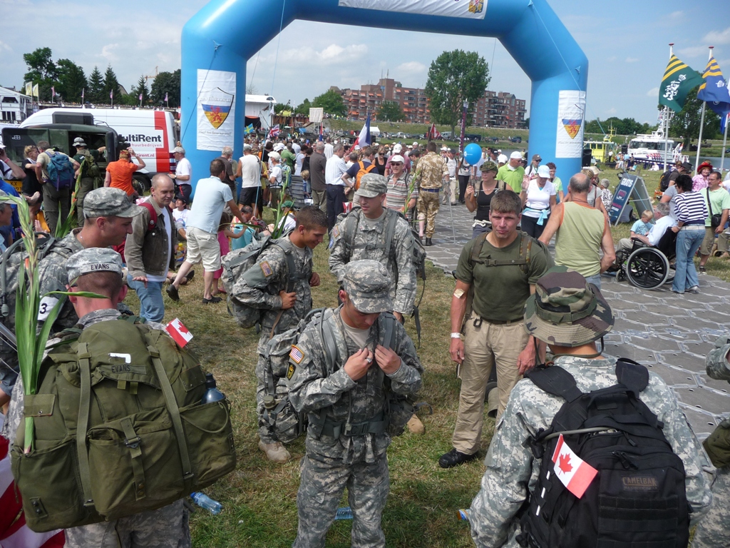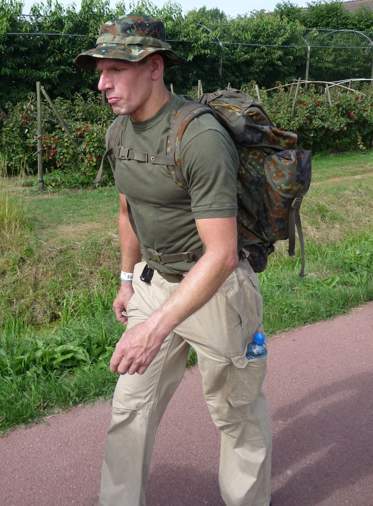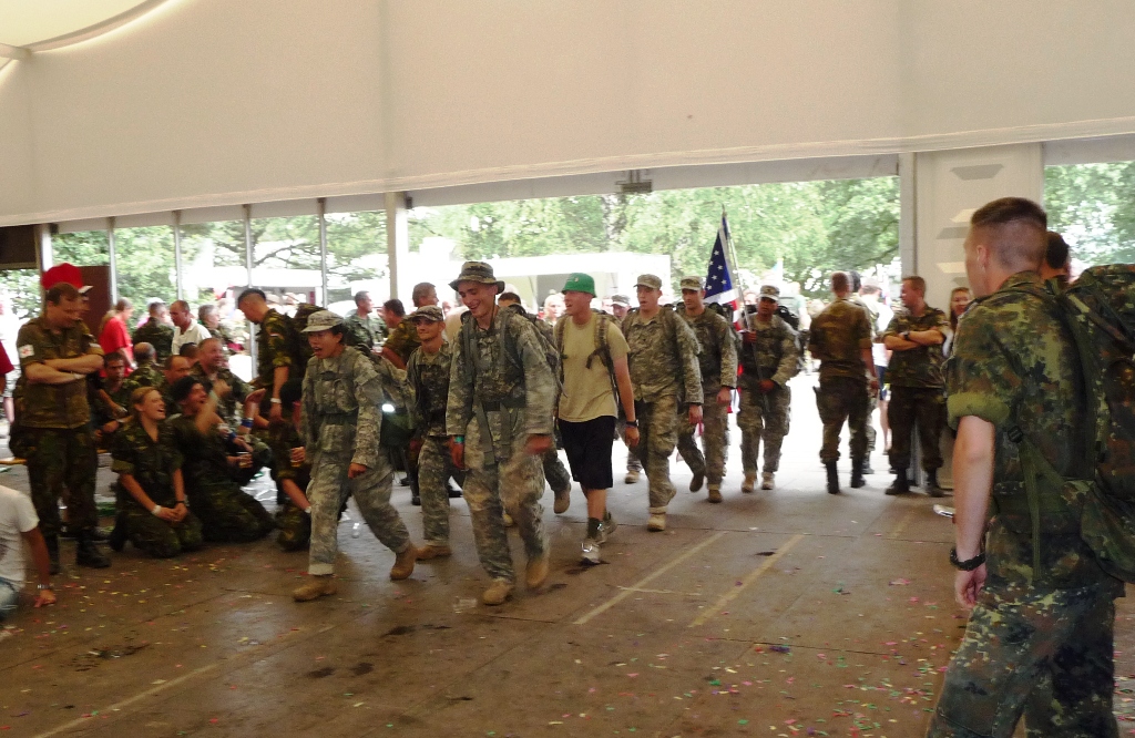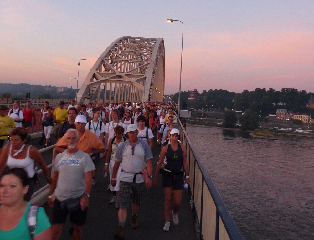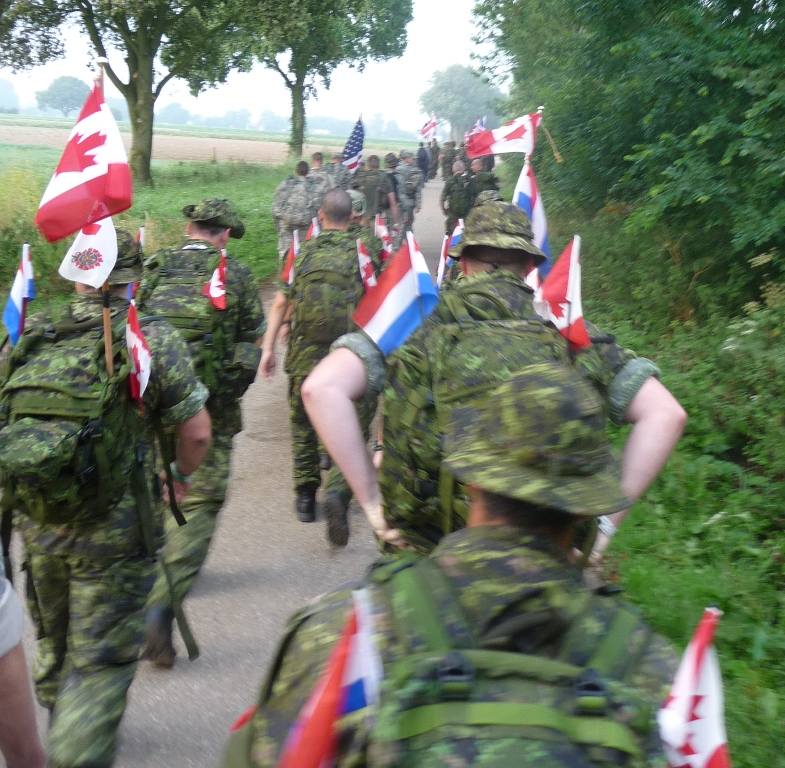 Mit den ca. 50.000 zivilen Teilnehmern geht es dann an vier Tagen auf den Marsch. Militärs haben hier jeden Tag mindestens 40 km mit mindestens 10 kg Gepäck in Formation zurückzulegen. Am Ende waren es dann mehr als 160 km. Die Füße mussten hierfür schon trainiert werden. Die diesjährigen Marschstrecken können hier abgerufen werden (Tag 1, Tag 2, Tag 3, Tag 4).