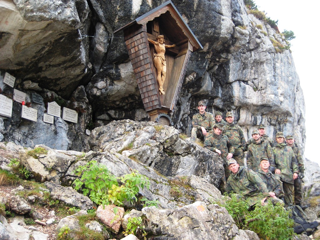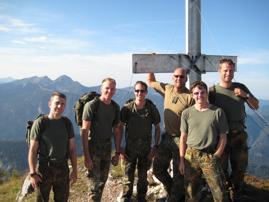 Mit der Materialseilbahn konnte am Freitagnachmittag das Material und die Ausrüstung auf die Reiteralpe gebracht werden. Das sonnige Wetter ausnützend, absolvierten die Reservisten noch einen leichten Bergmarsch auf einen naheliegenden Gipfel.