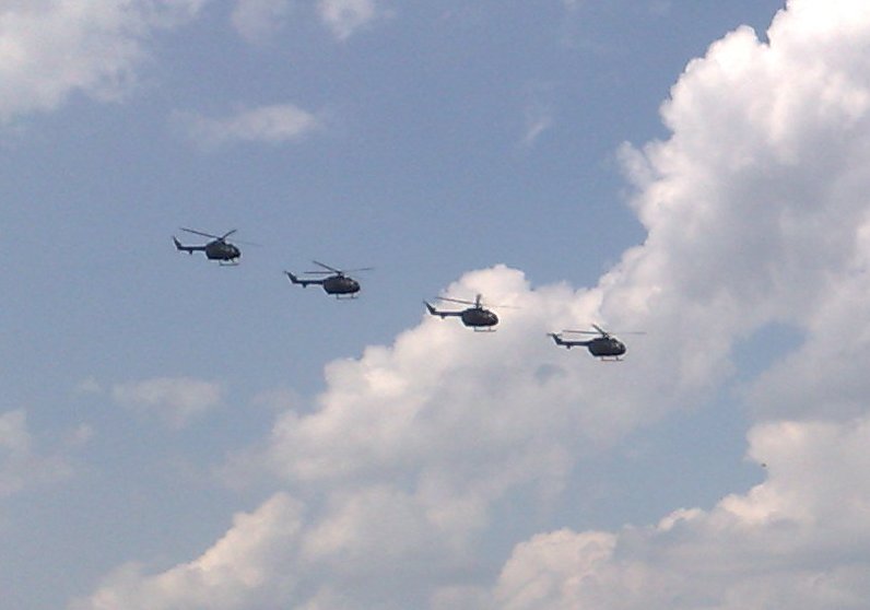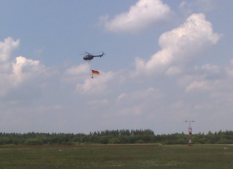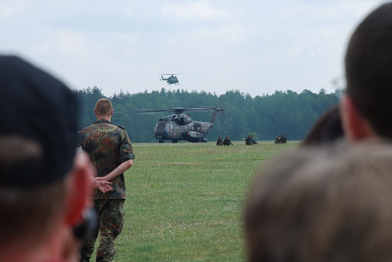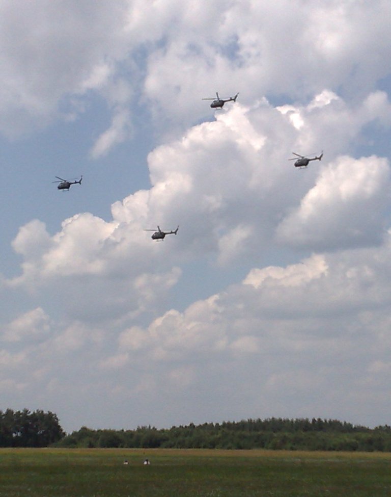 Mit einer spektakulären Flugschau feierte das Kampfhubschrauberregiment 26 "Franken" am Sonntag sein 30jähriges Bestehen. In zwei identischen, atemberaubenden Flugvorführungen am Vor- und Nachmittag in Roth kamen Panzerabwehrhubschrauber BO-105, Transporthubschrauber CH-53 sowie UH-1D, Luftlandepanzer Wiesel, Freifaller (Fallschirmspringer, die aus großer Höhe abspringen und ihren Fallschirm manuell auslösen) und Fastroper (Soldaten, die sich aus einem Hubschrauber abseilen) zum Einsatz, um die Fähigkeiten der Bundeswehr in einem Krisengebiet zu simulieren.